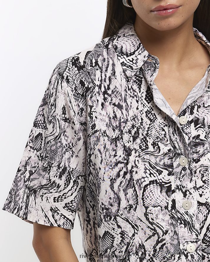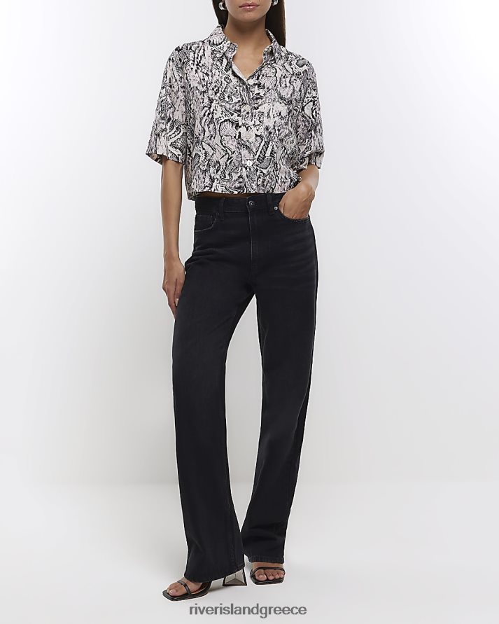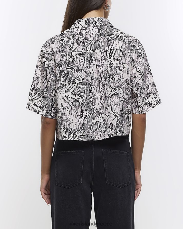 River Island ενδύματα γκρί γυναίκες cropped πουκάμισο με animal print B6N8X4581