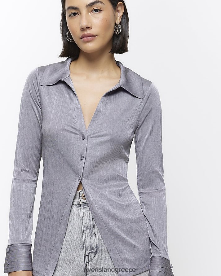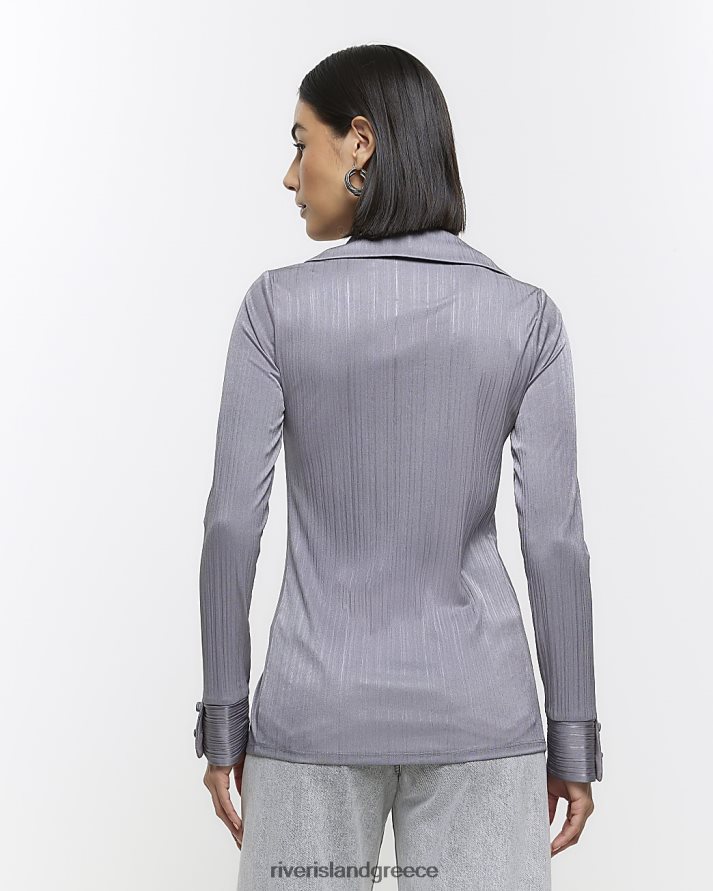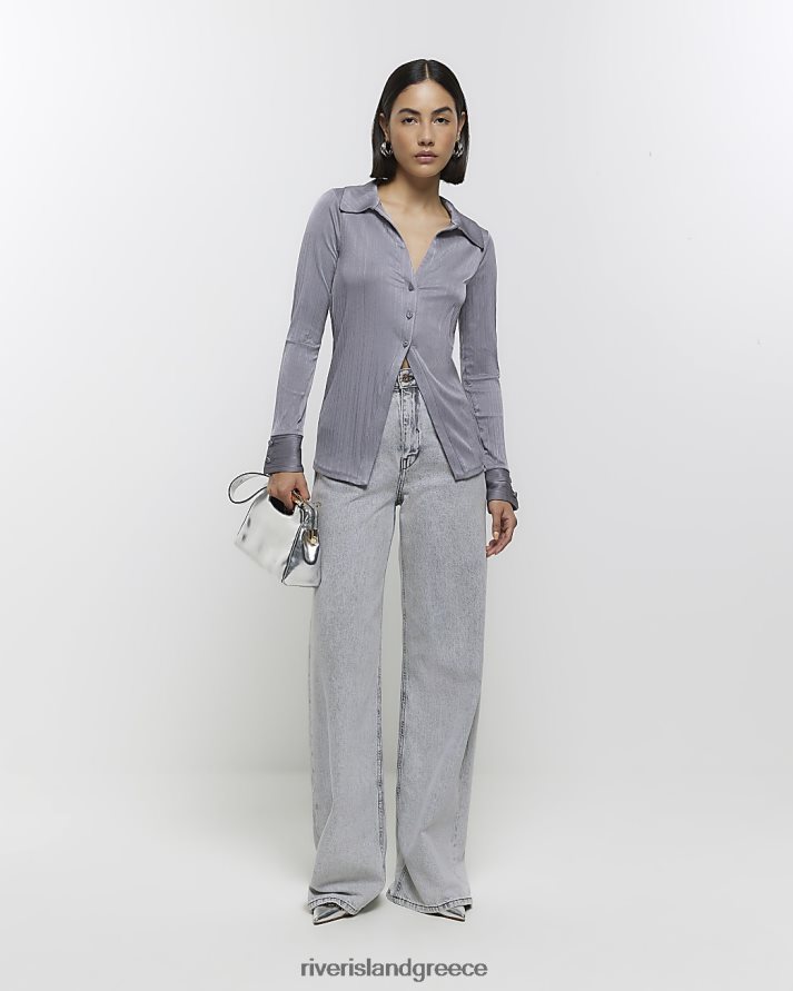 River Island ενδύματα γκρί γυναίκες plisse slinky πουκάμισο B6N8X646