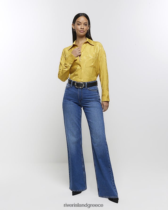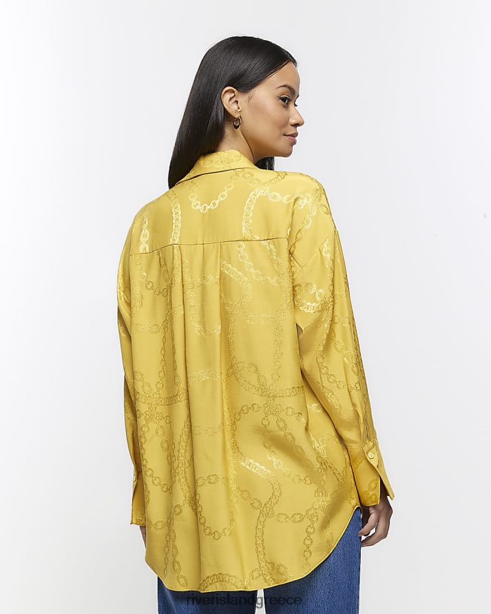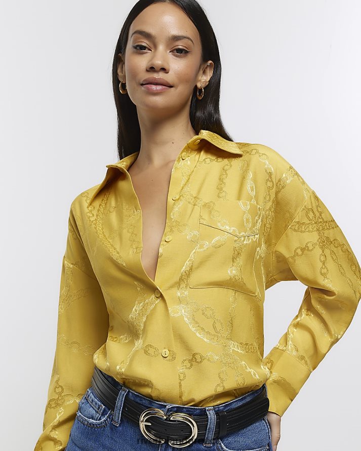 River Island ενδύματα κίτρινος γυναίκες σατέν αλυσίδα oversized πουκάμισο B6N8X3860