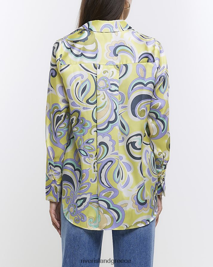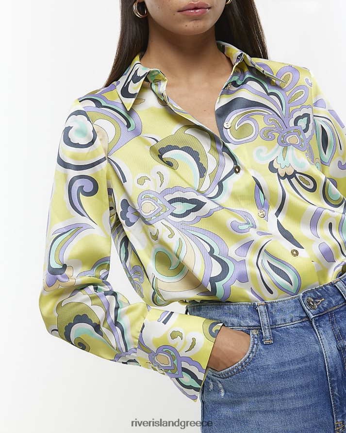 River Island ενδύματα κίτρινος γυναίκες σατέν πουκάμισο paisley B6N8X1380