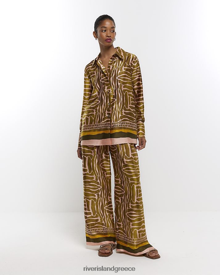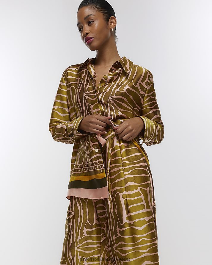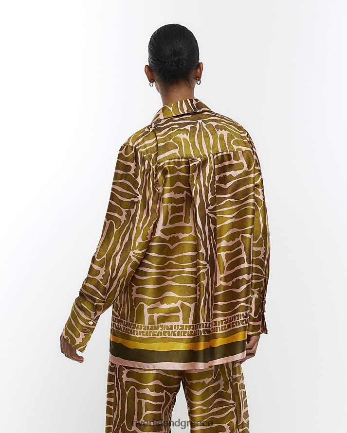 River Island ενδύματα καφέ γυναίκες εμπριμέ σατέν μακρυμάνικο πουκάμισο B6N8X1372