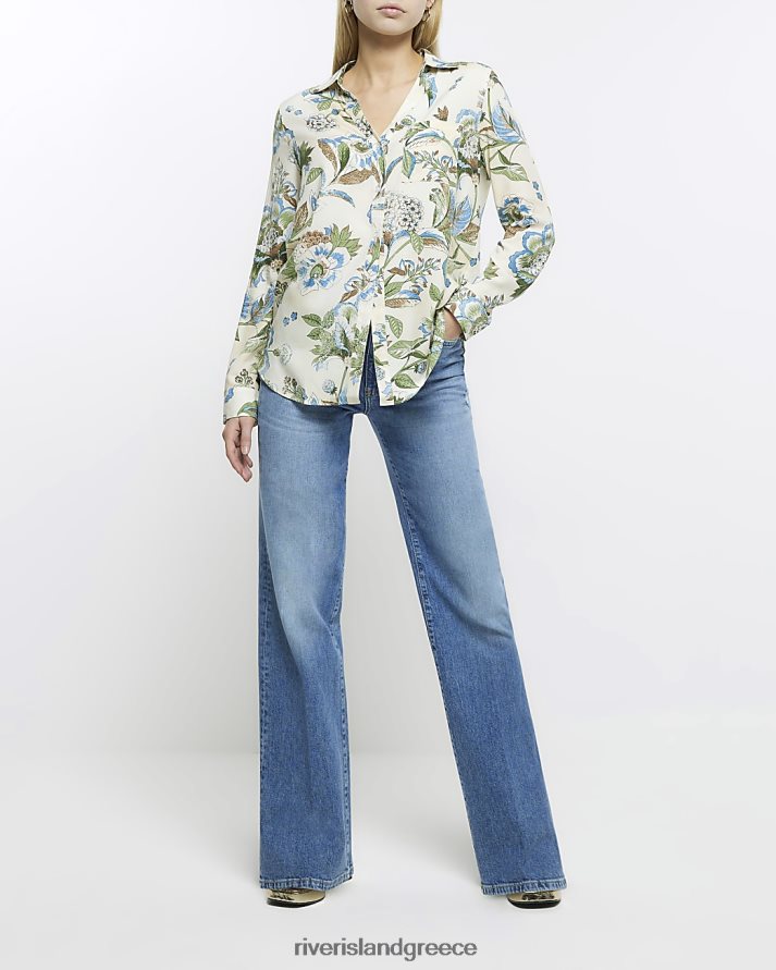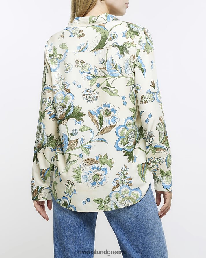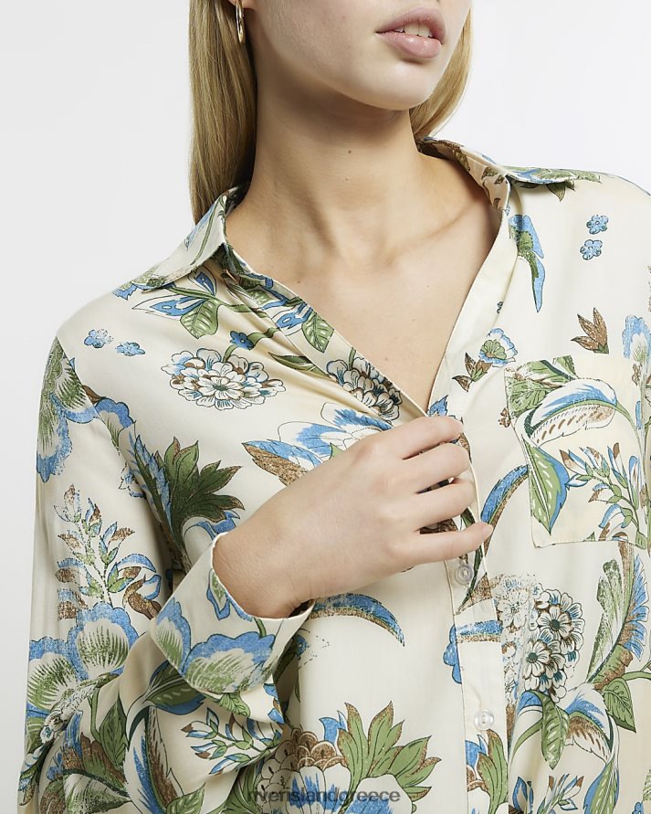 River Island ενδύματα κρέμα γυναίκες πουκάμισο με ανοιχτό λαιμό με φλοράλ στάμπα B6N8X275