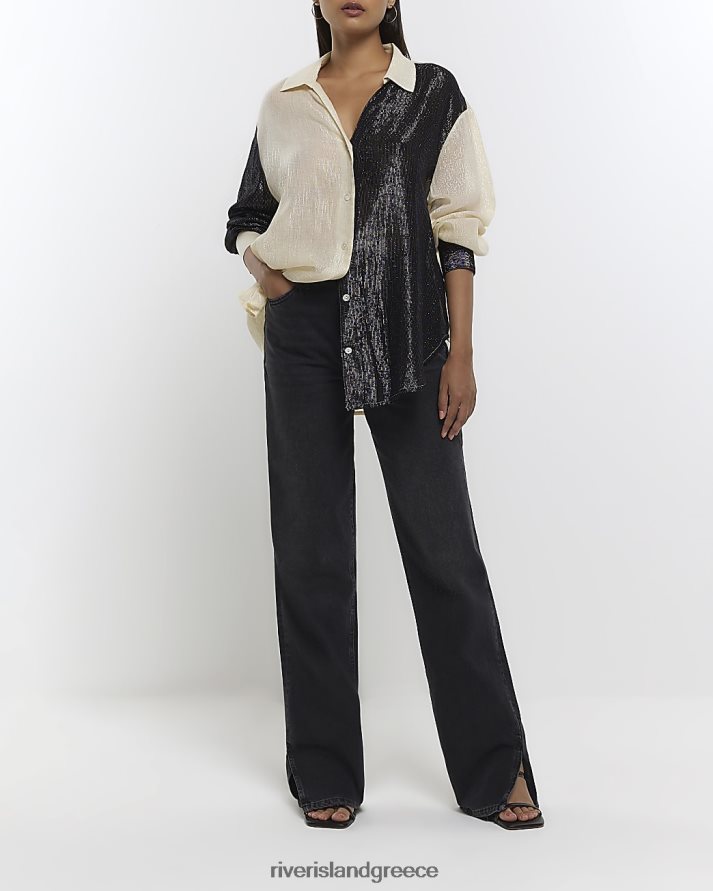 River Island ενδύματα κρέμα γυναίκες πουκάμισο με γκλίτερ χρώματος B6N8X3811