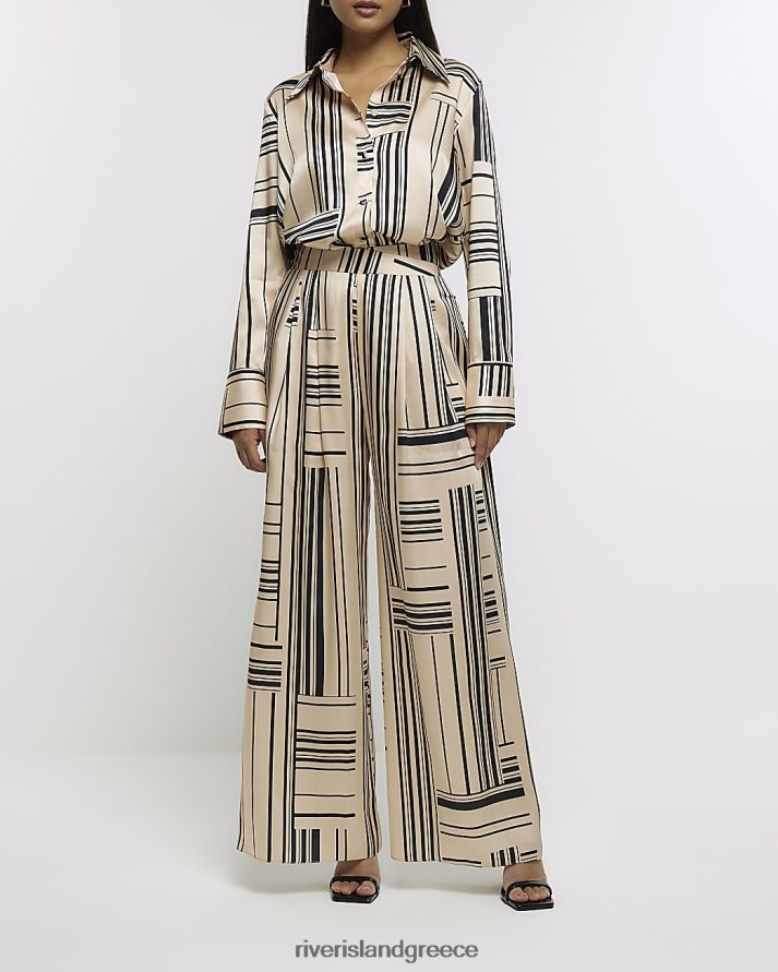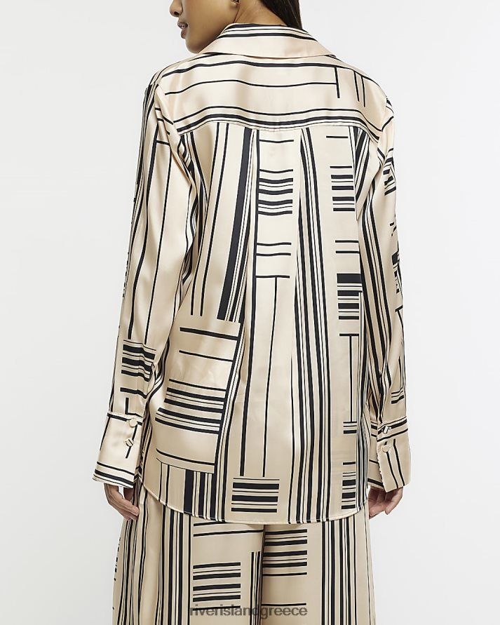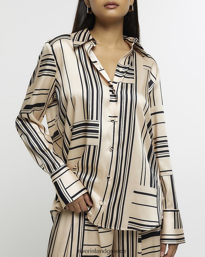 River Island ενδύματα κρέμα γυναίκες ριγέ σατέν υπερμεγέθη πουκάμισο B6N8X4455