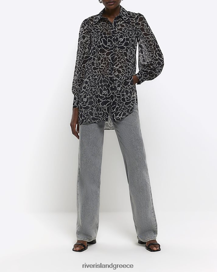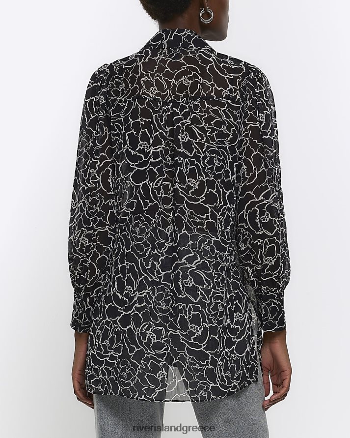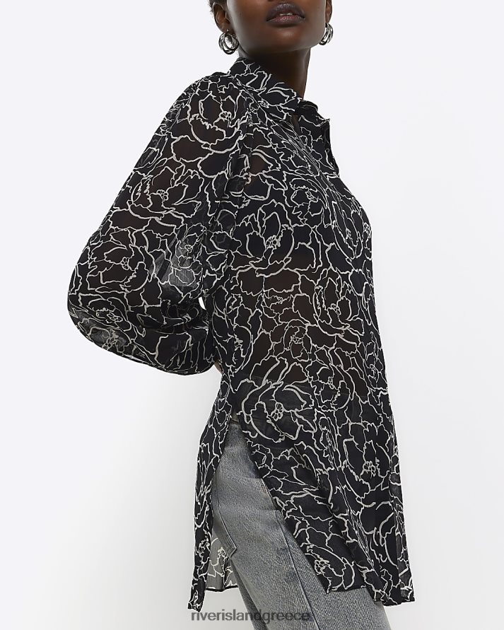 River Island ενδύματα μαύρος γυναίκες λουλουδάτο πουκάμισο με παραγάδι B6N8X4360
