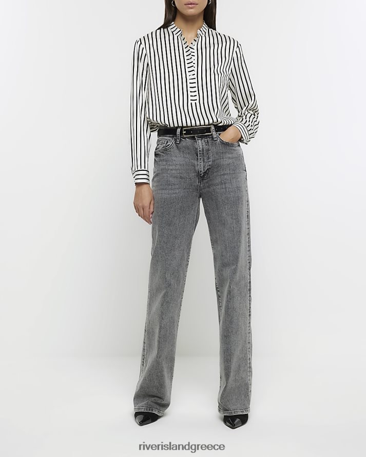 River Island ενδύματα μαύρος γυναίκες ριγέ πουκάμισο με λαιμόκοψη B6N8X4251