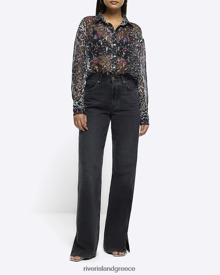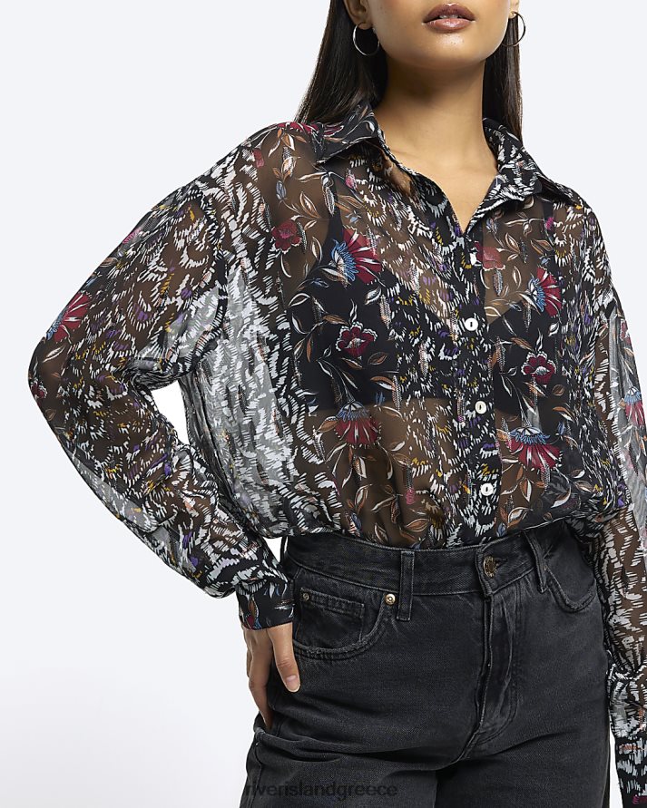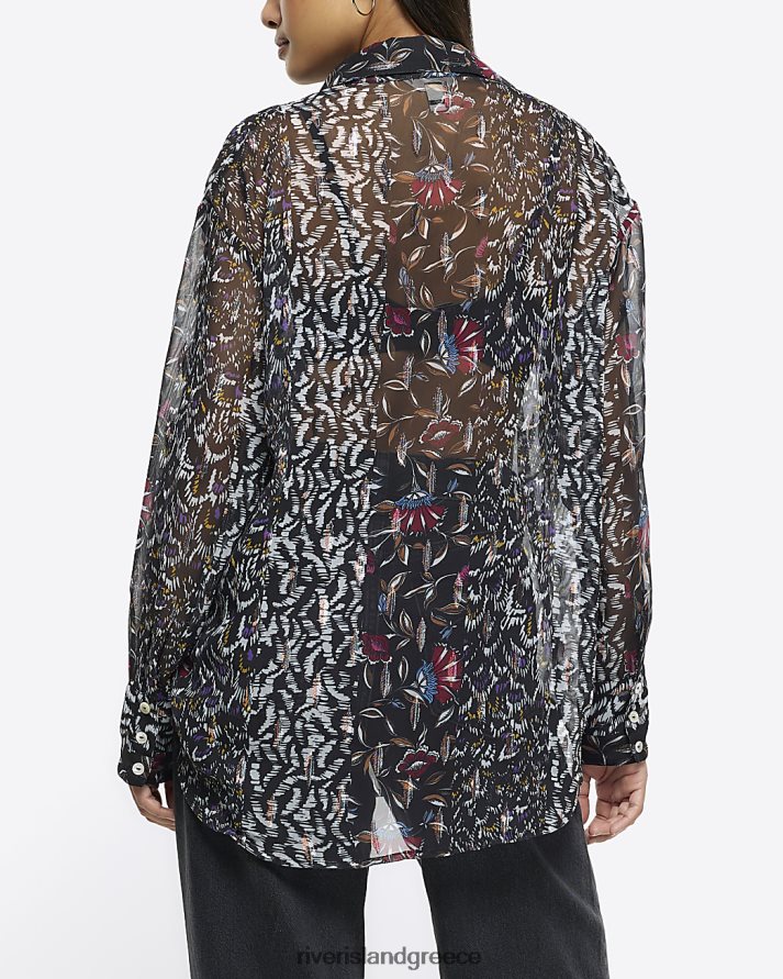 River Island ενδύματα μαύρος γυναίκες σιφόν φλοράλ μακρυμάνικο πουκάμισο B6N8X3802