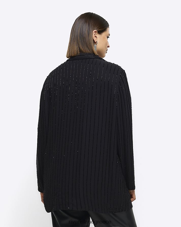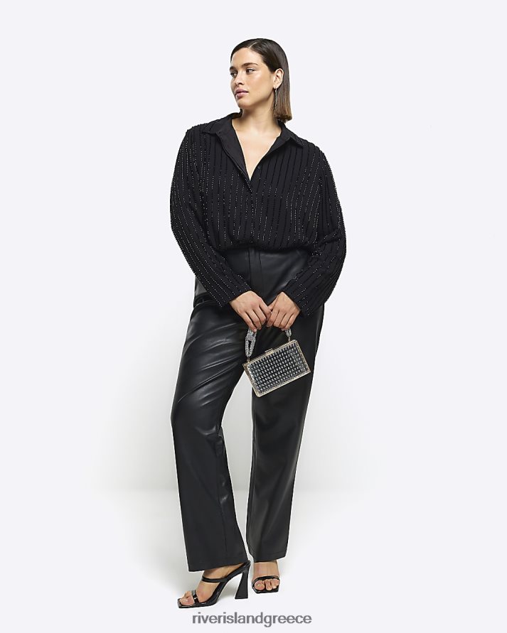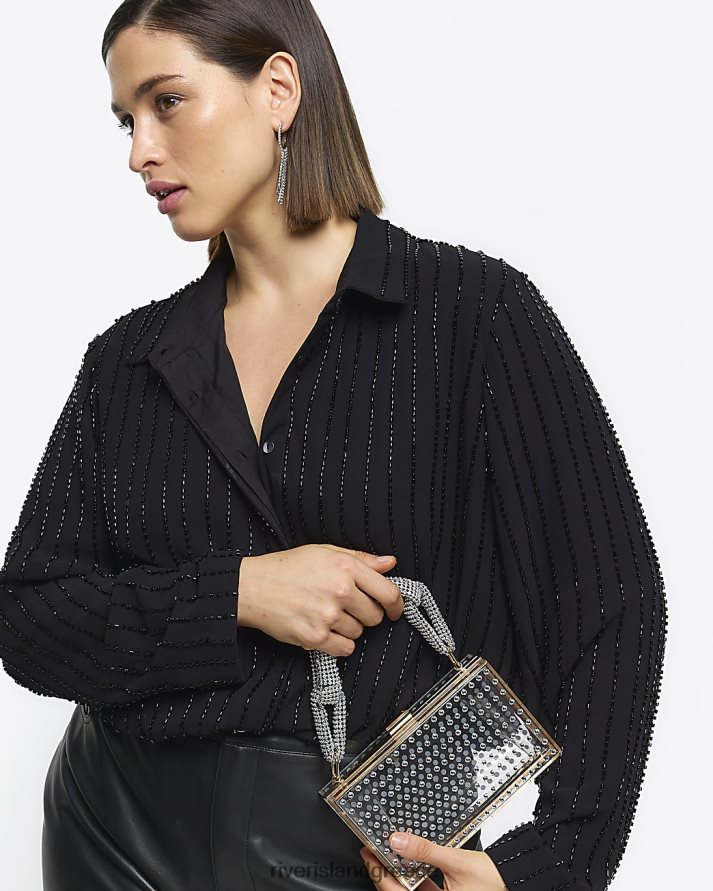 River Island ενδύματα μαύρος γυναίκες συν μακρυμάνικο πουκάμισο με χάντρες B6N8X5031