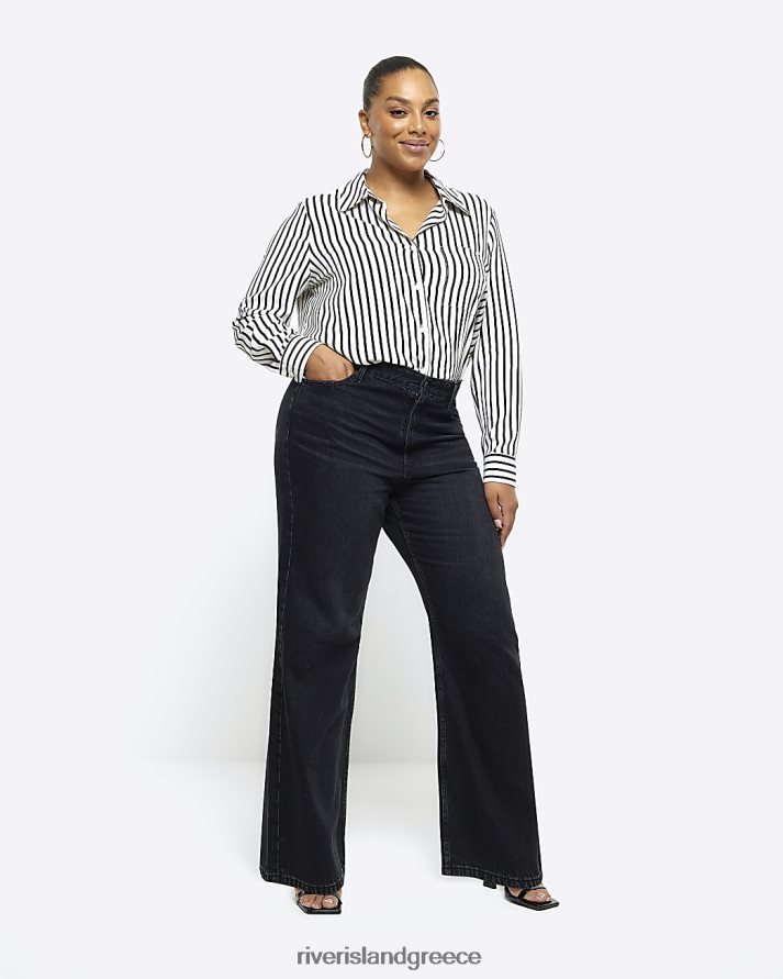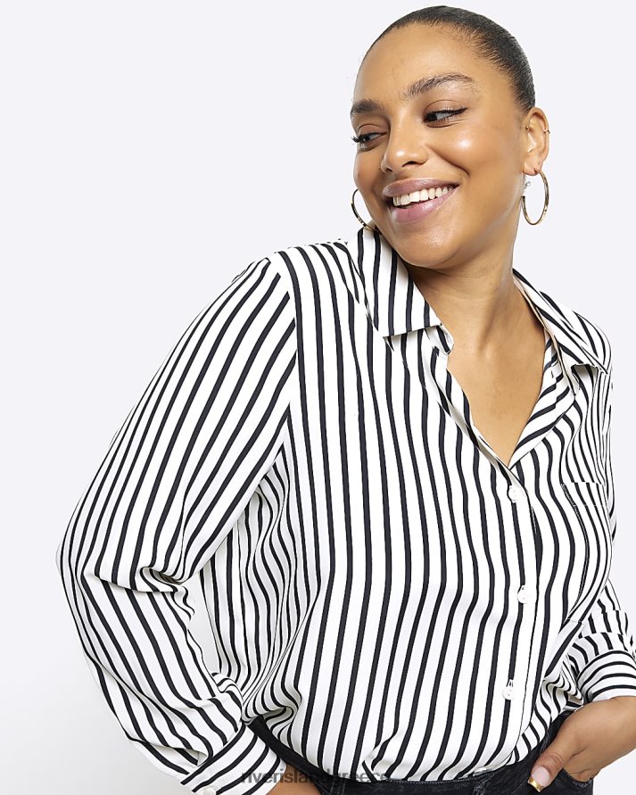 River Island ενδύματα μαύρος γυναίκες συν σατέν ριγέ πουκάμισο B6N8X5092