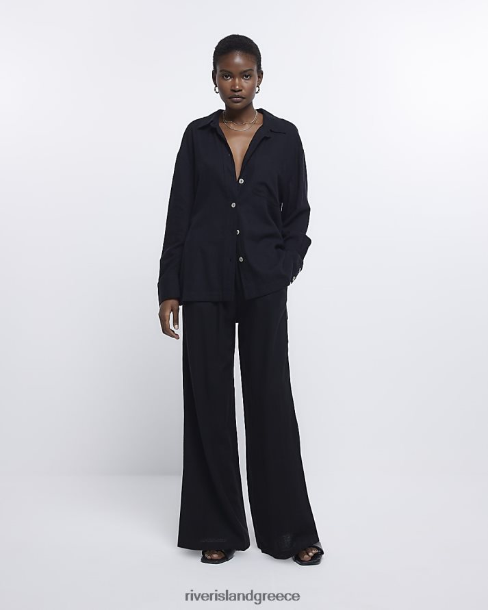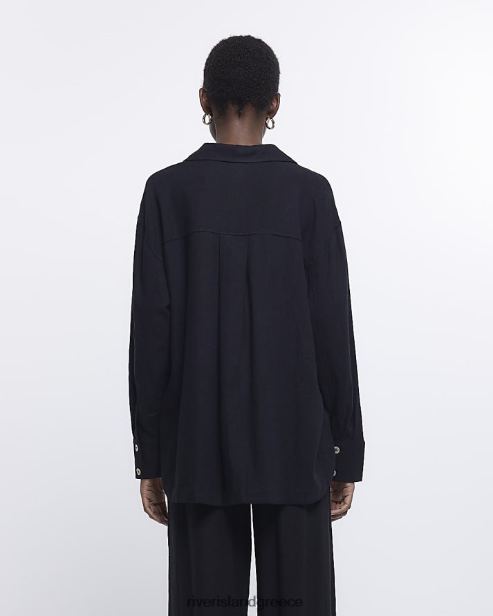 River Island ενδύματα μαύρος γυναίκες υπερμεγέθη πουκάμισο με λινό B6N8X1241