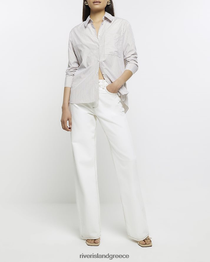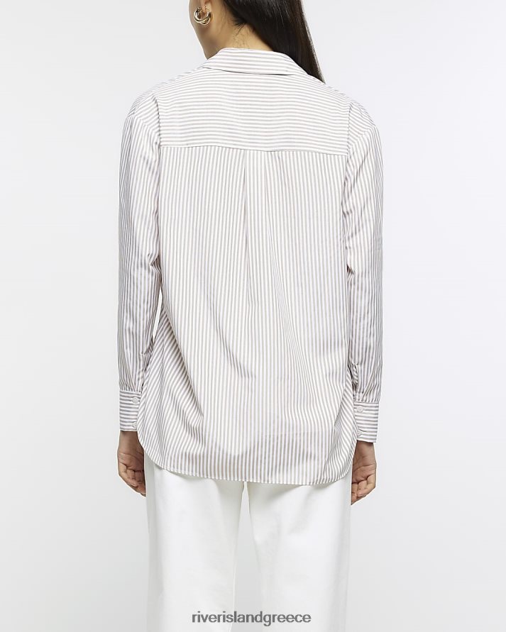 River Island ενδύματα μπεζ γυναίκες ριγέ πουκάμισο B6N8X320