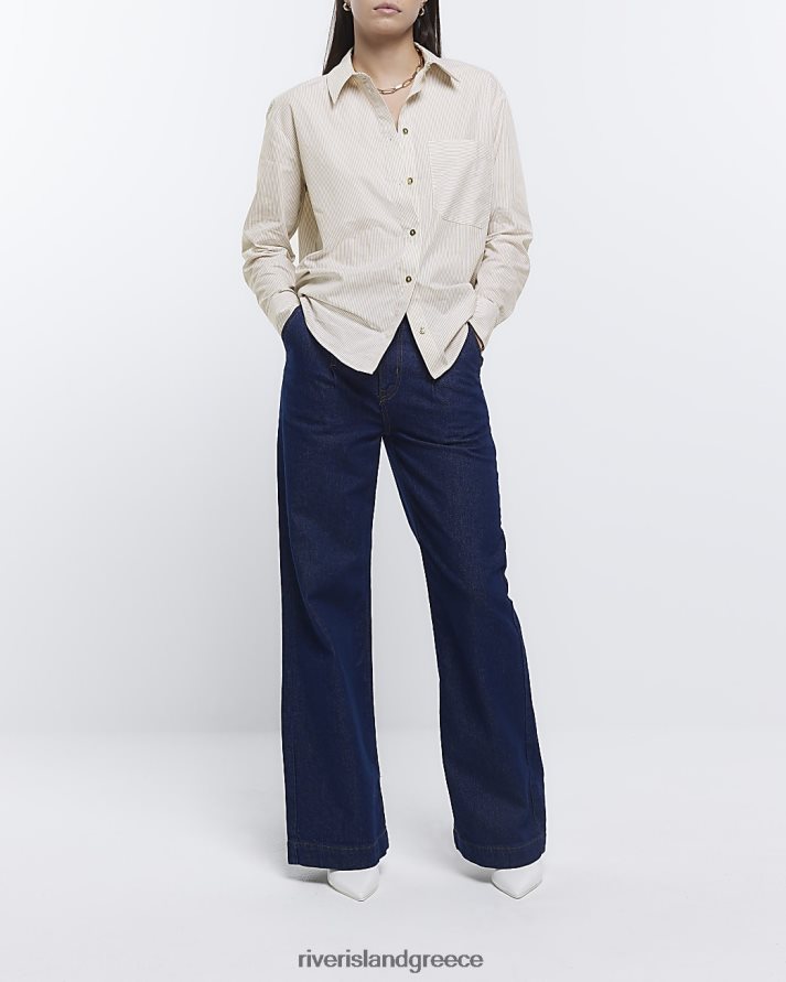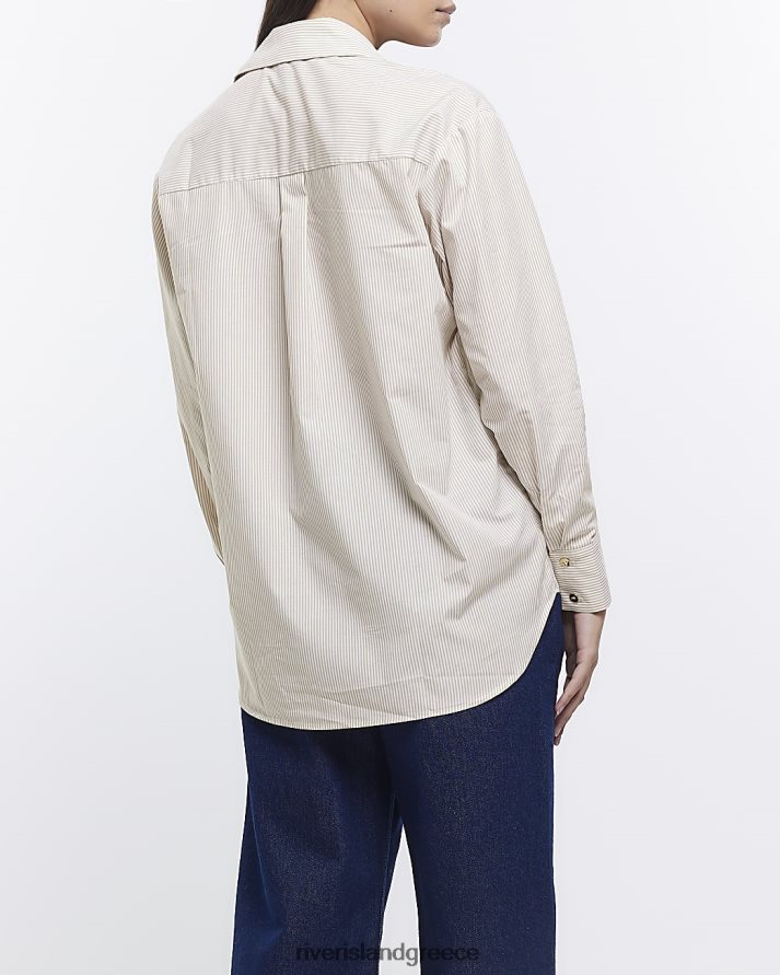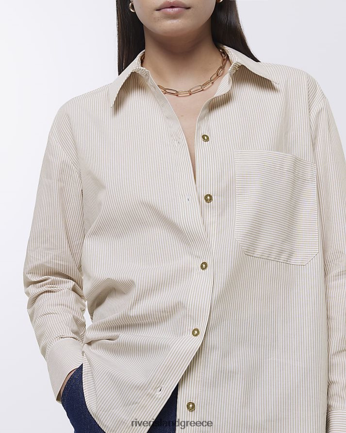 River Island ενδύματα μπεζ γυναίκες ριγέ υπερμεγέθη πουκάμισο B6N8X321
