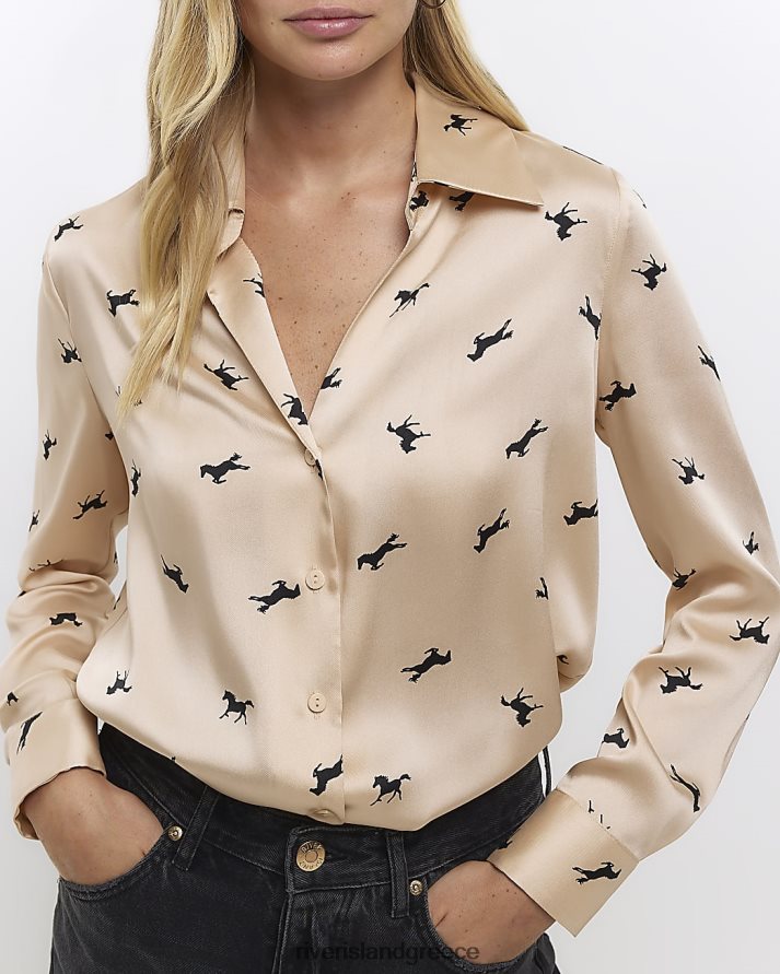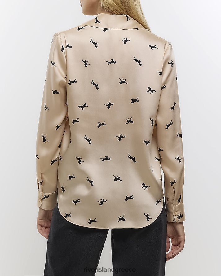River Island ενδύματα μπεζ γυναίκες σατέν μακρυμάνικο πουκάμισο B6N8X150
