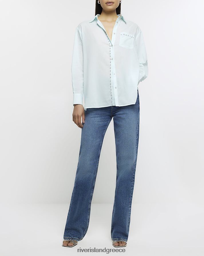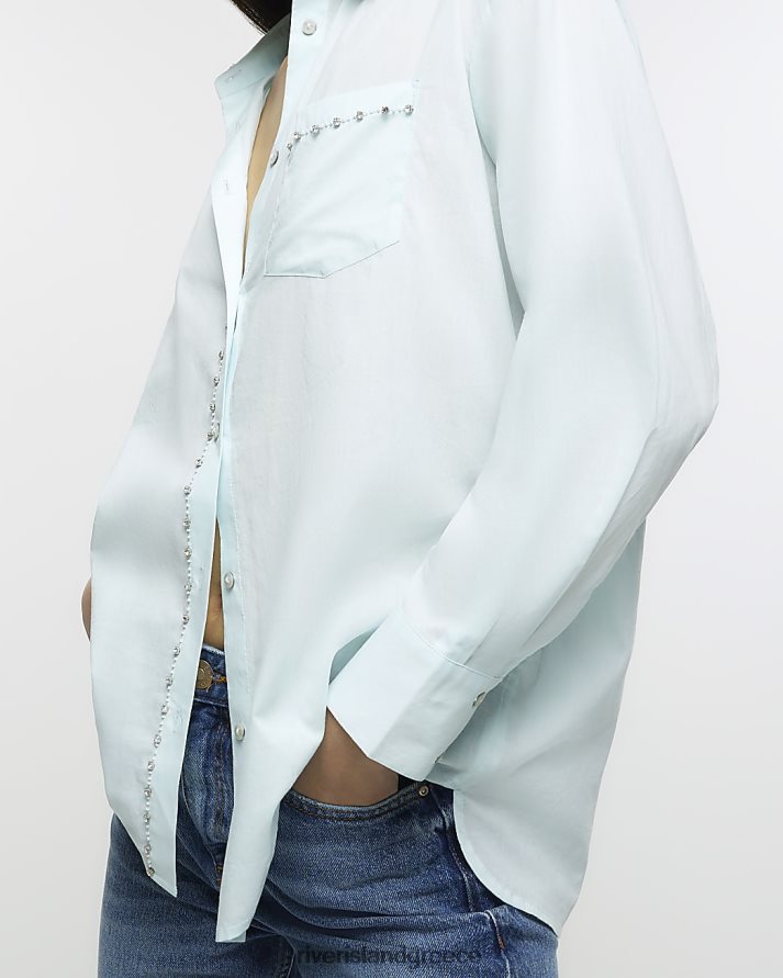 River Island ενδύματα μπλε γυναίκες διακοσμημένο μακρυμάνικο πουκάμισο B6N8X1584
