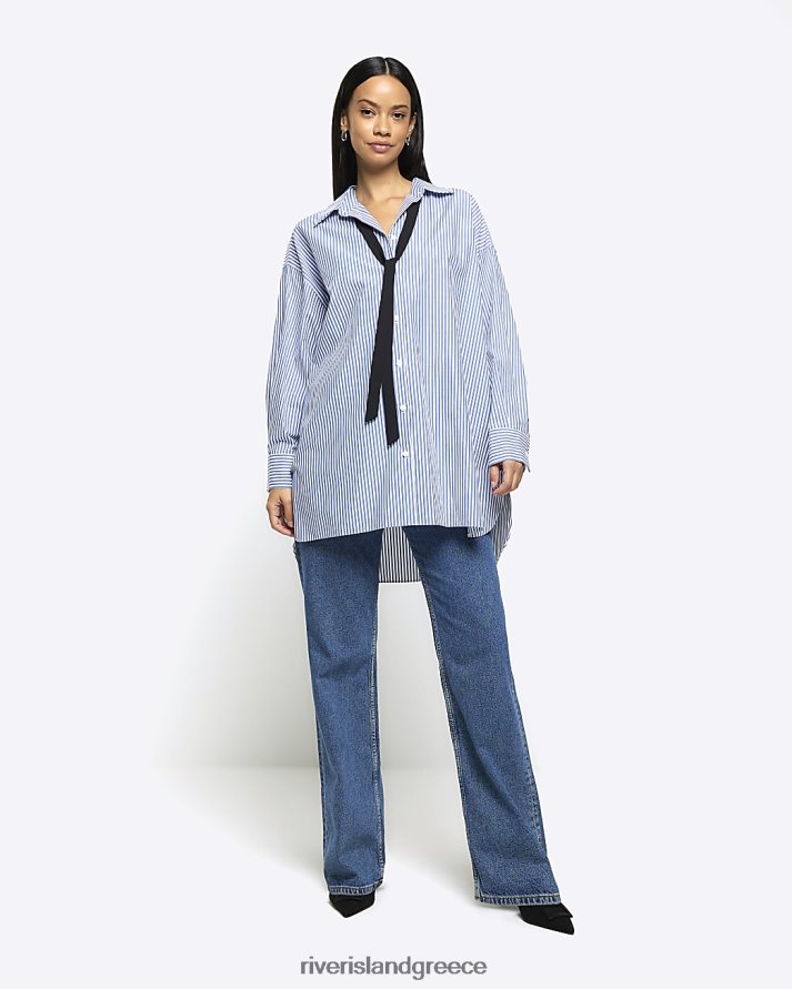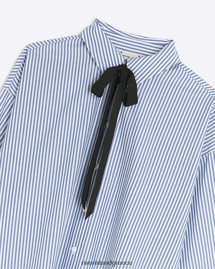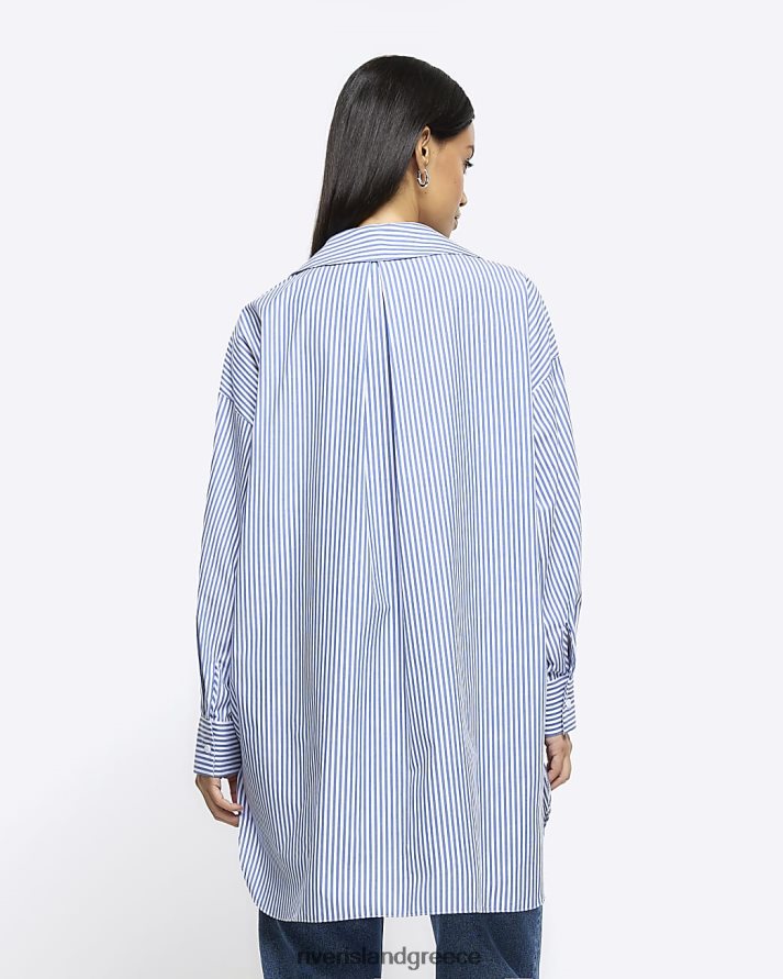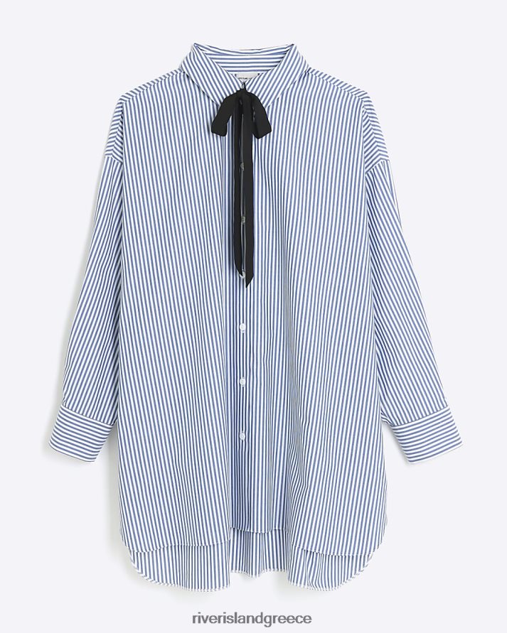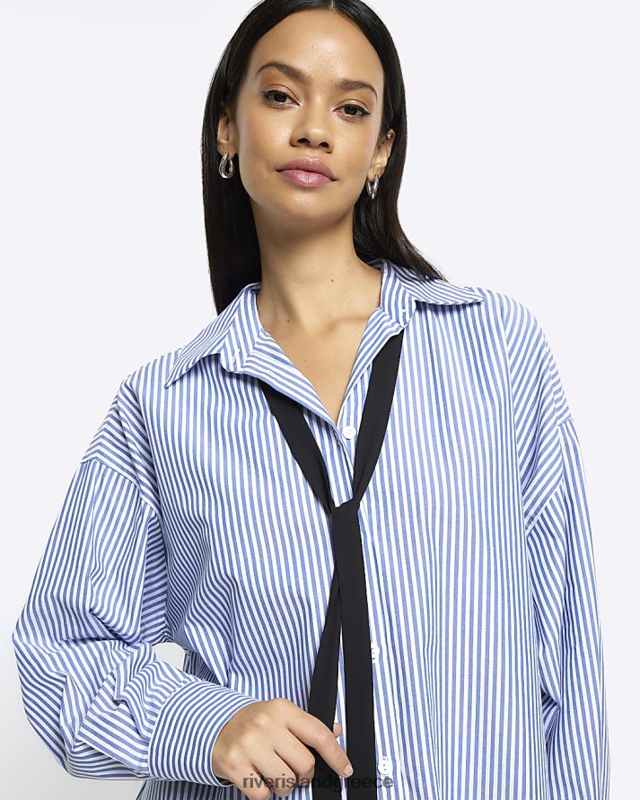 River Island ενδύματα μπλε γυναίκες πουκάμισο μεγάλου μεγέθους με ριγέ λαιμόκοψη B6N8X4222