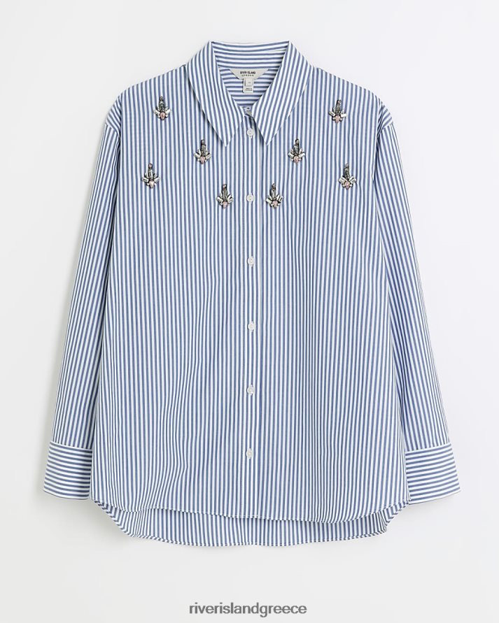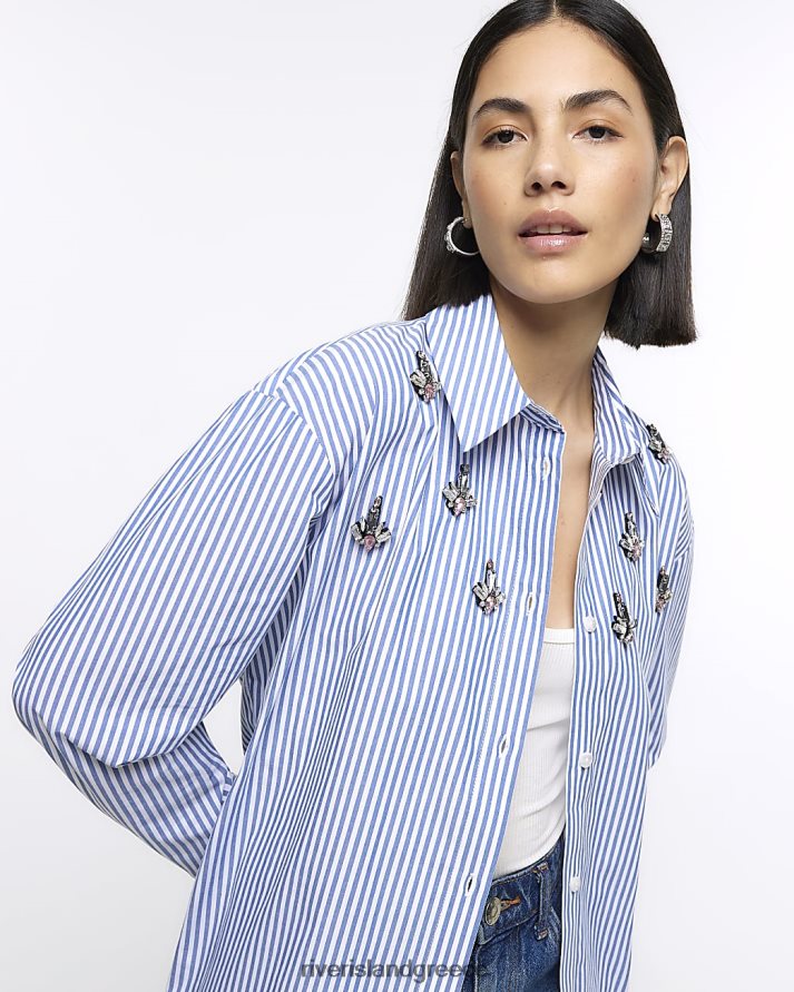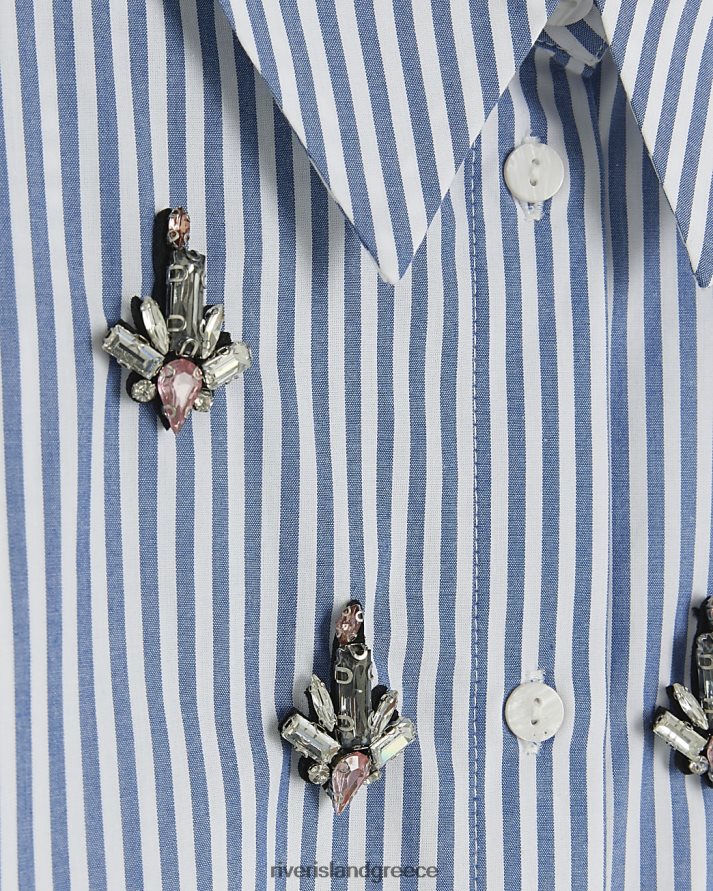 River Island ενδύματα μπλε γυναίκες ριγέ διακοσμημένο πουκάμισο B6N8X4198