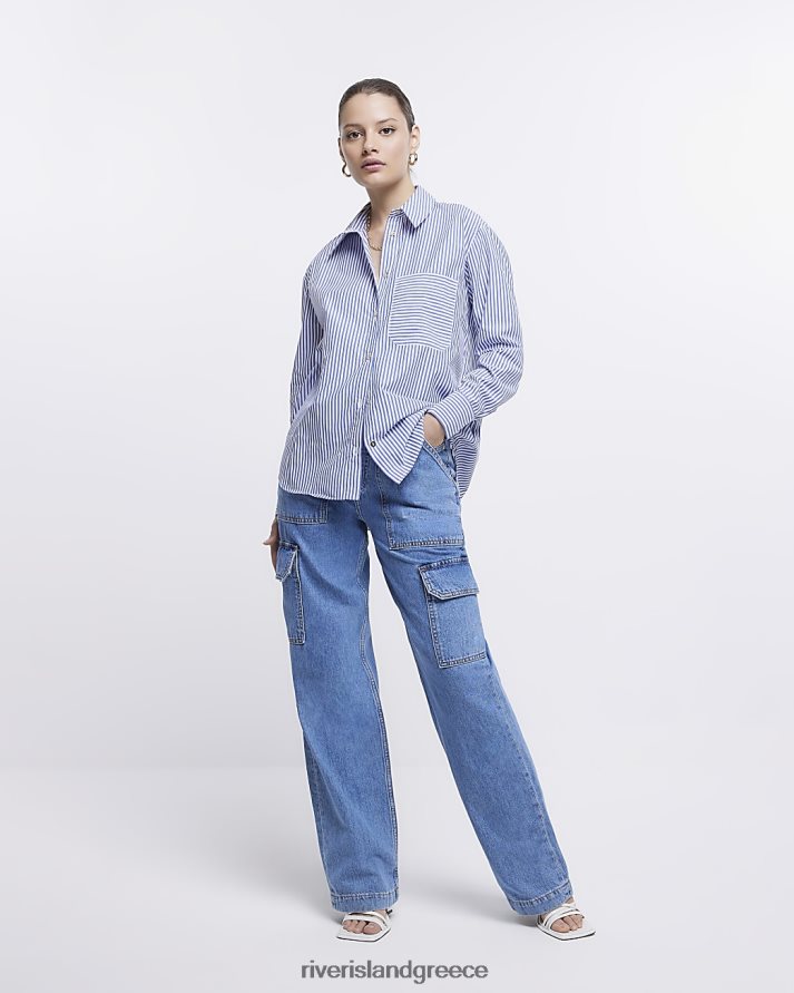 River Island ενδύματα μπλε γυναίκες ριγέ υπερμεγέθη μακρυμάνικο πουκάμισο B6N8X324
