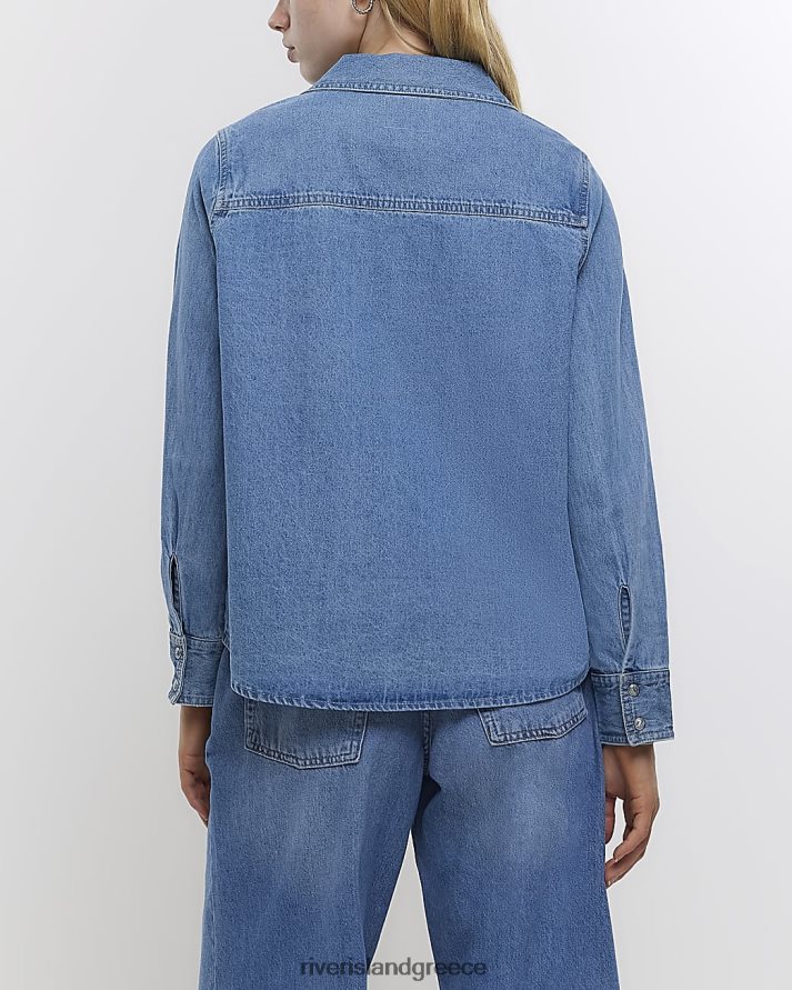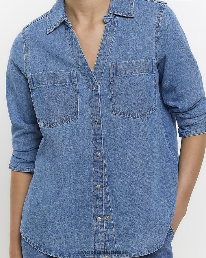 River Island ενδύματα μπλε γυναίκες petite μακρυμάνικο τζιν πουκάμισο B6N8X5278