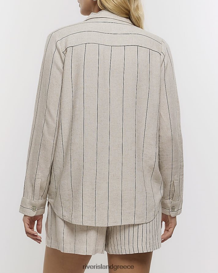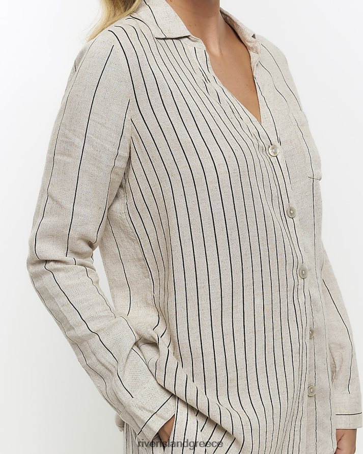 River Island ενδύματα πέτρα γυναίκες ριγέ μακρυμάνικο πουκάμισο με λινό B6N8X1243