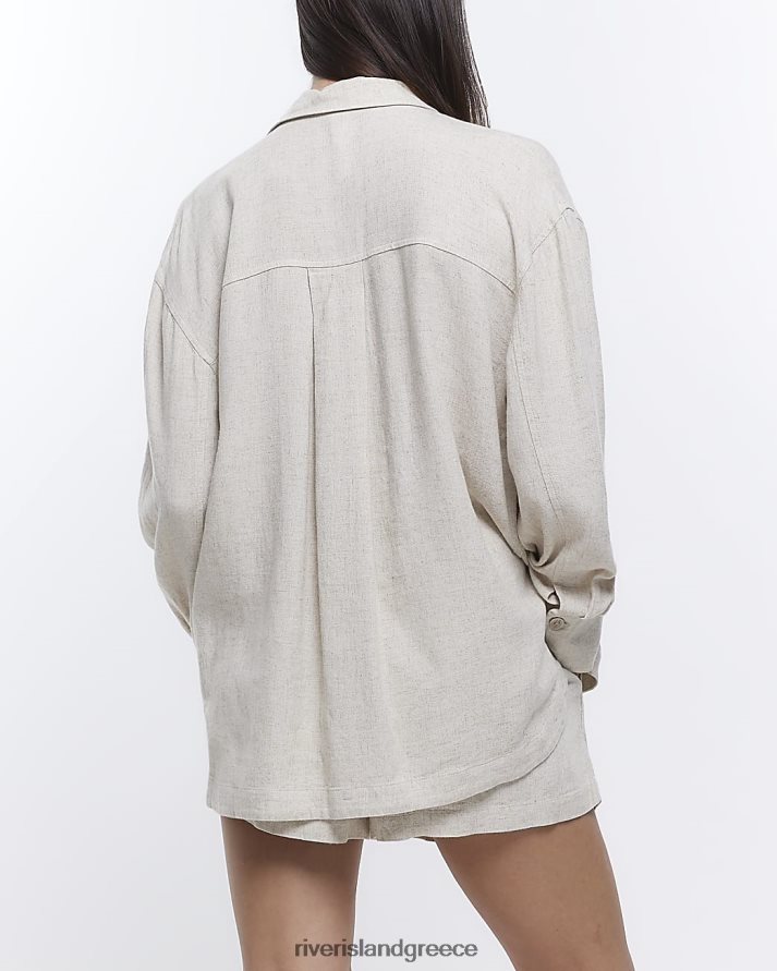 River Island ενδύματα πέτρα γυναίκες υπερμεγέθη πουκάμισο με λινό B6N8X1244