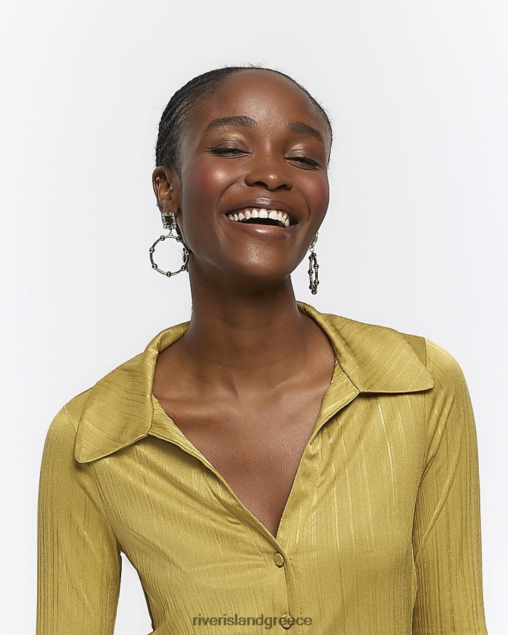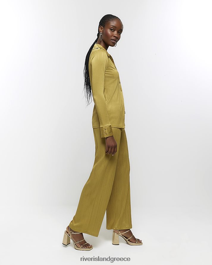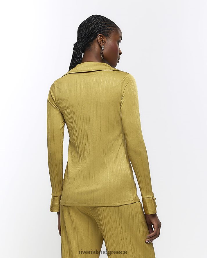 River Island ενδύματα πράσινος γυναίκες μακρυμάνικο plisse slinky πουκάμισο B6N8X647