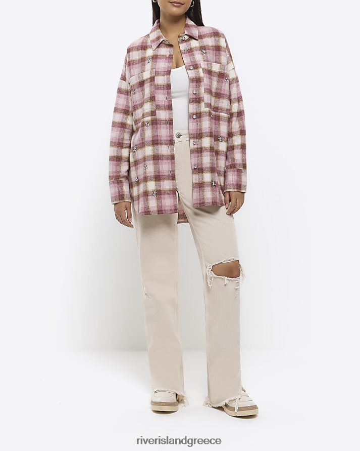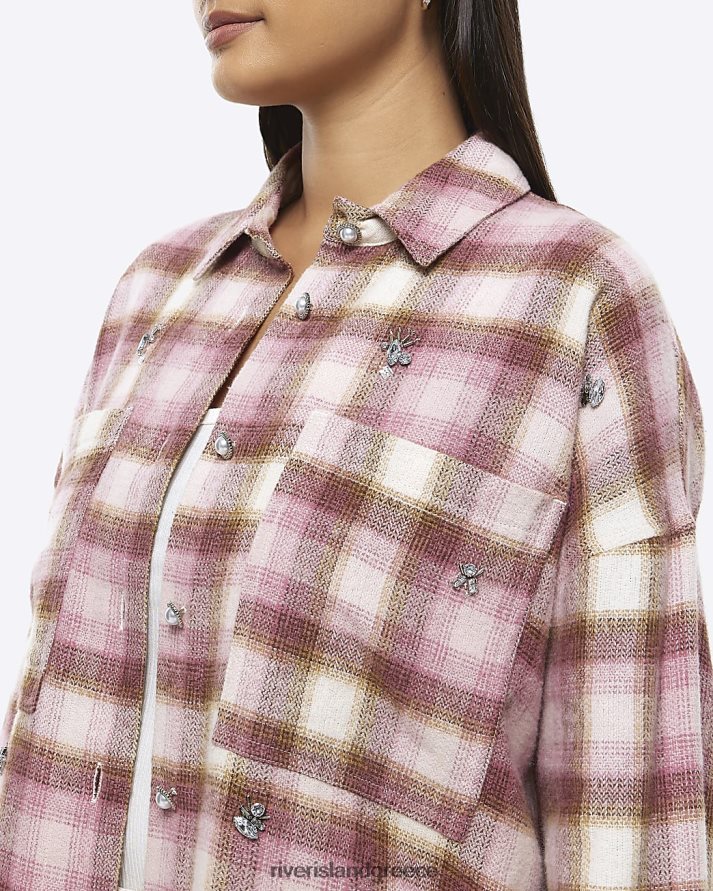River Island ενδύματα ροζ γυναίκες τσέκα στολισμένο πουκάμισο B6N8X1100