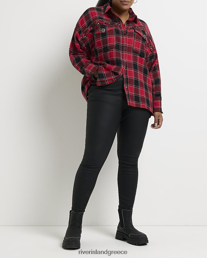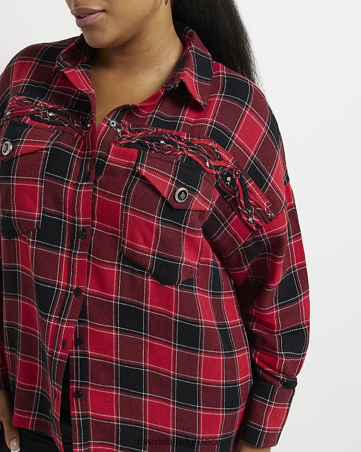 River Island ενδύματα το κόκκινο γυναίκες συν check oversized διακοσμημένο πουκάμισο B6N8X5164