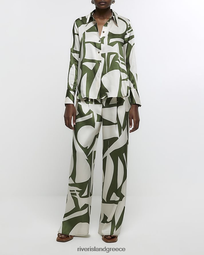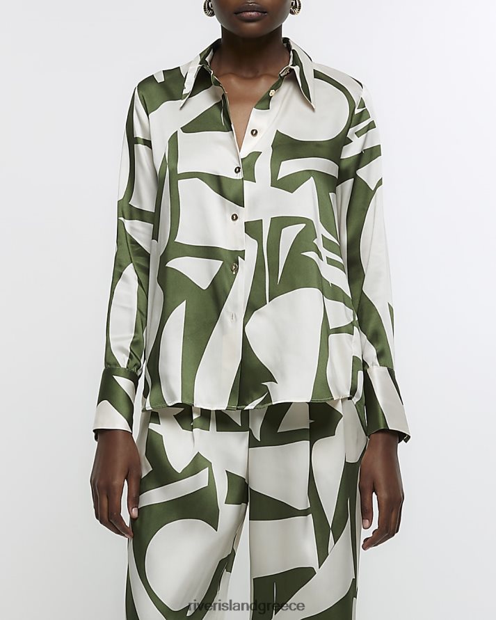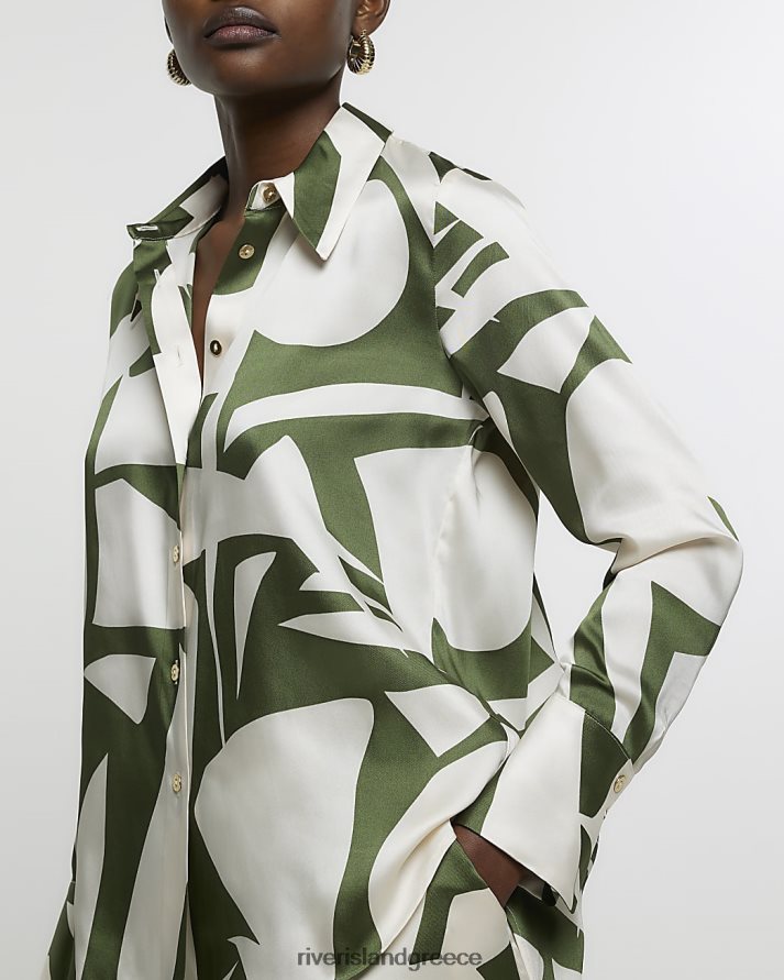 River Island ενδύματα χακί γυναίκες υπερμεγέθη σατέν πουκάμισο B6N8X1375