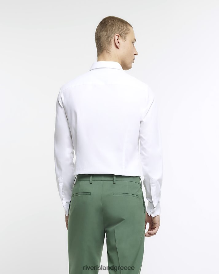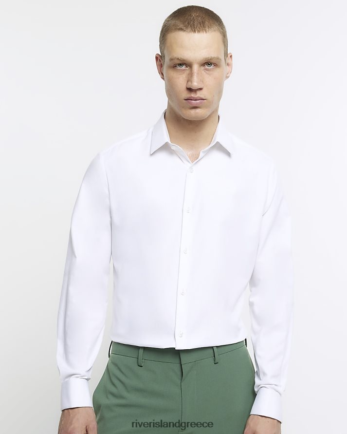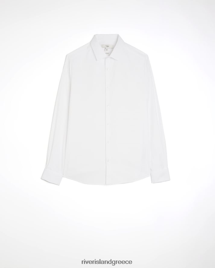 River Island ενδύματα άσπρο άνδρες έξυπνο πουκάμισο με διπλή μανσέτα σε λεπτή εφαρμογή B6N8X5777