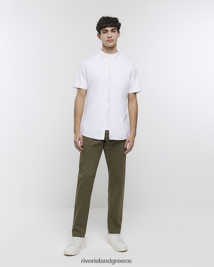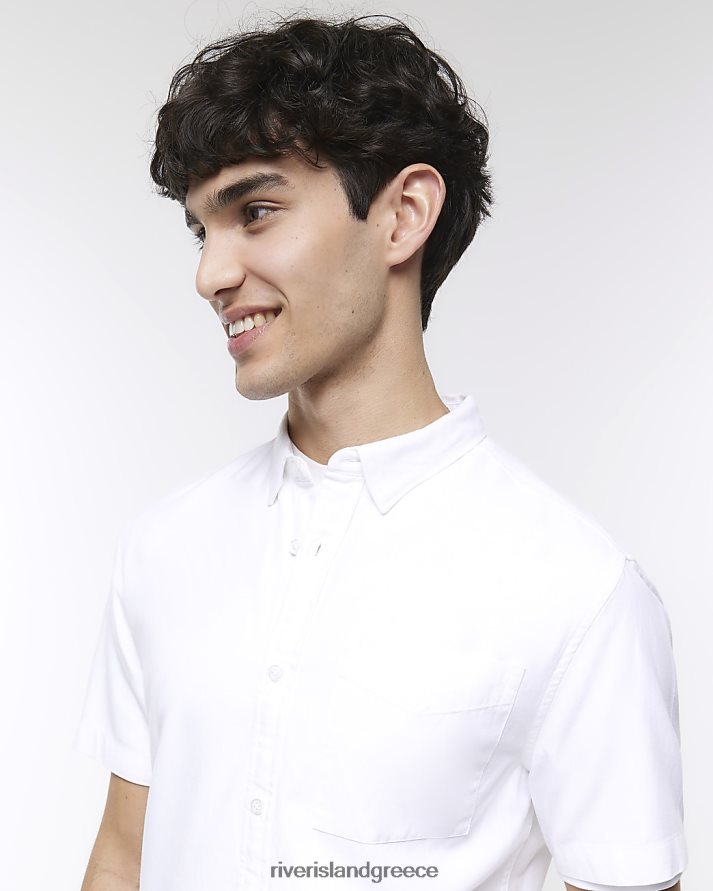 River Island ενδύματα άσπρο άνδρες κανονική εφαρμογή κοντομάνικο πουκάμισο lyocell B6N8X2837