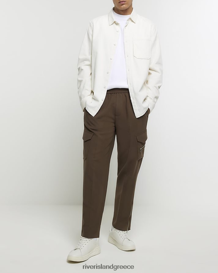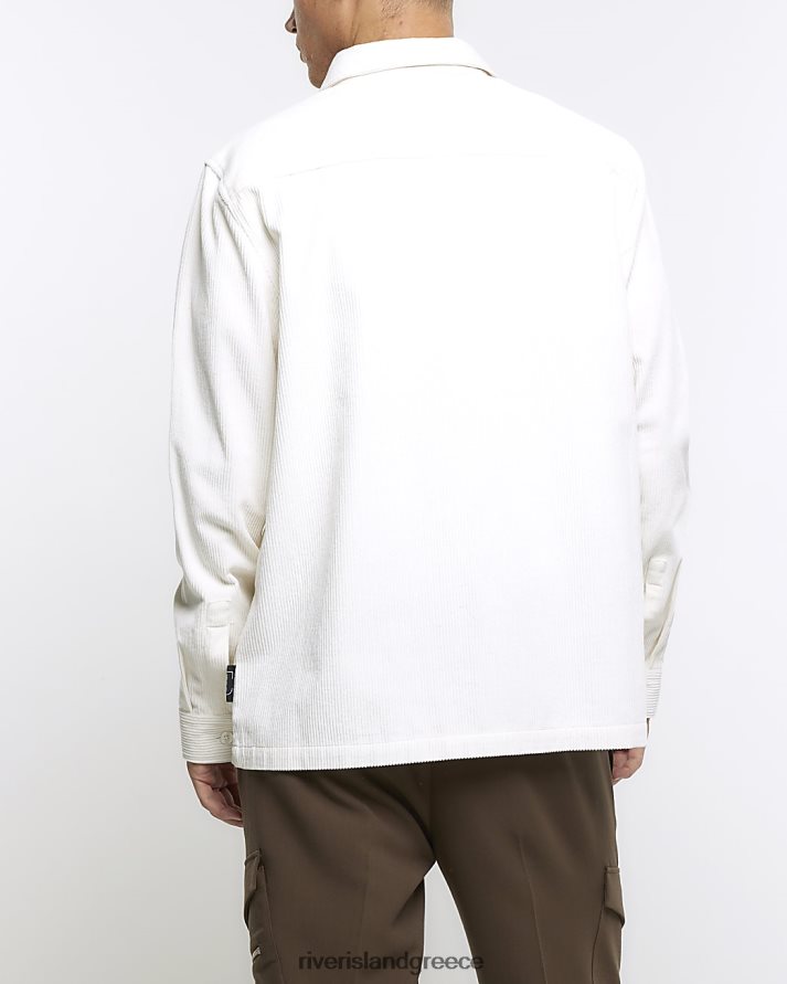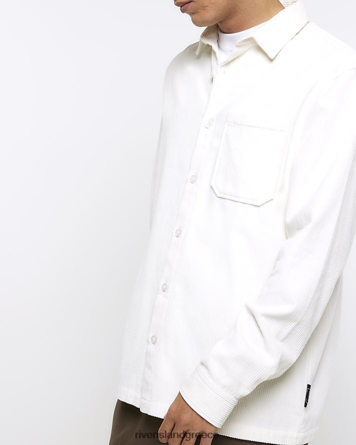 River Island ενδύματα άσπρο άνδρες κανονική εφαρμογή κοτλέ μακρυμάνικο πουκάμισο B6N8X2529