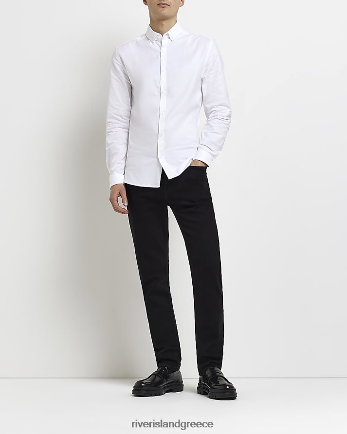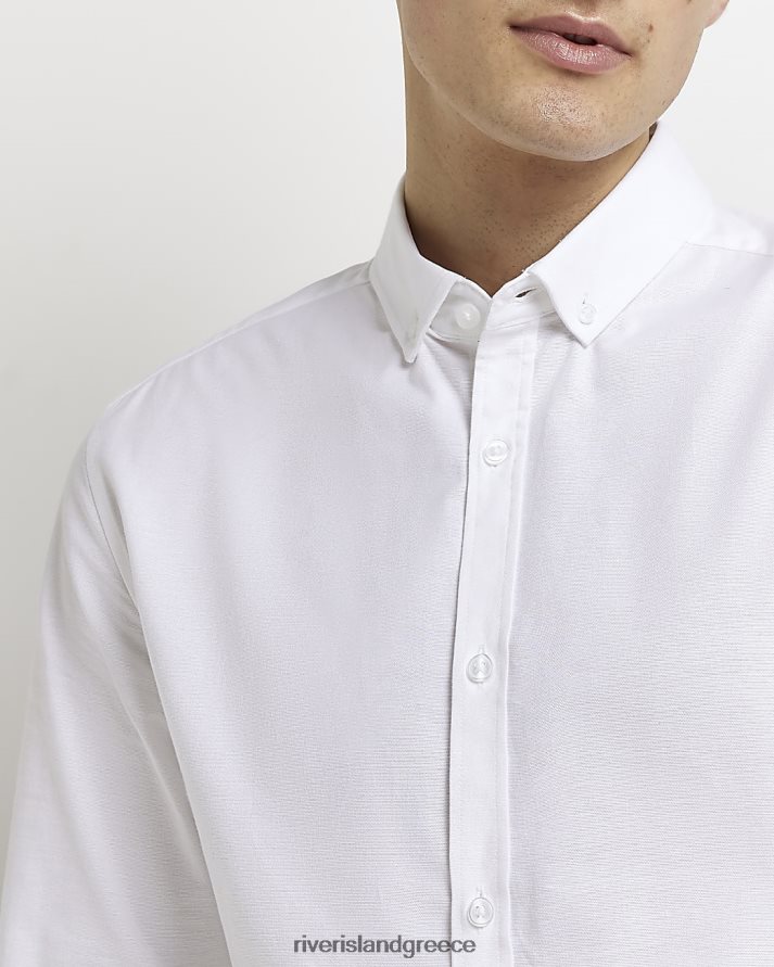 River Island ενδύματα άσπρο άνδρες μακρυμάνικο μπλουζάκι oxford B6N8X5658
