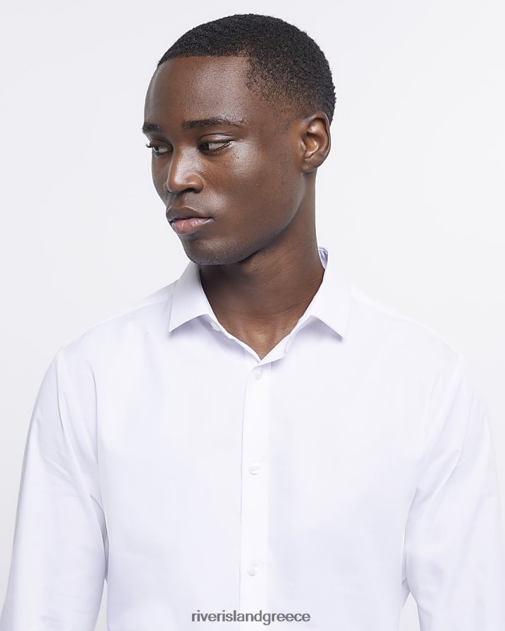 River Island ενδύματα άσπρο άνδρες μακρυμάνικο πουκάμισο σε λεπτή εφαρμογή B6N8X2551