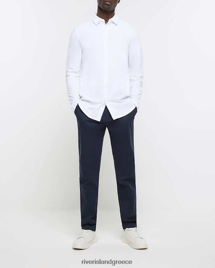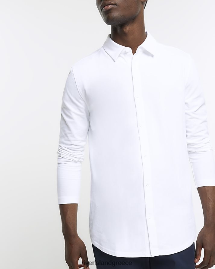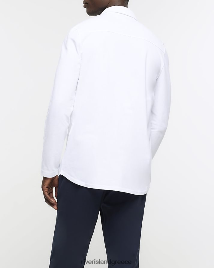 River Island ενδύματα άσπρο άνδρες πουκάμισο ζέρσεϊ σε κανονική εφαρμογή B6N8X2721