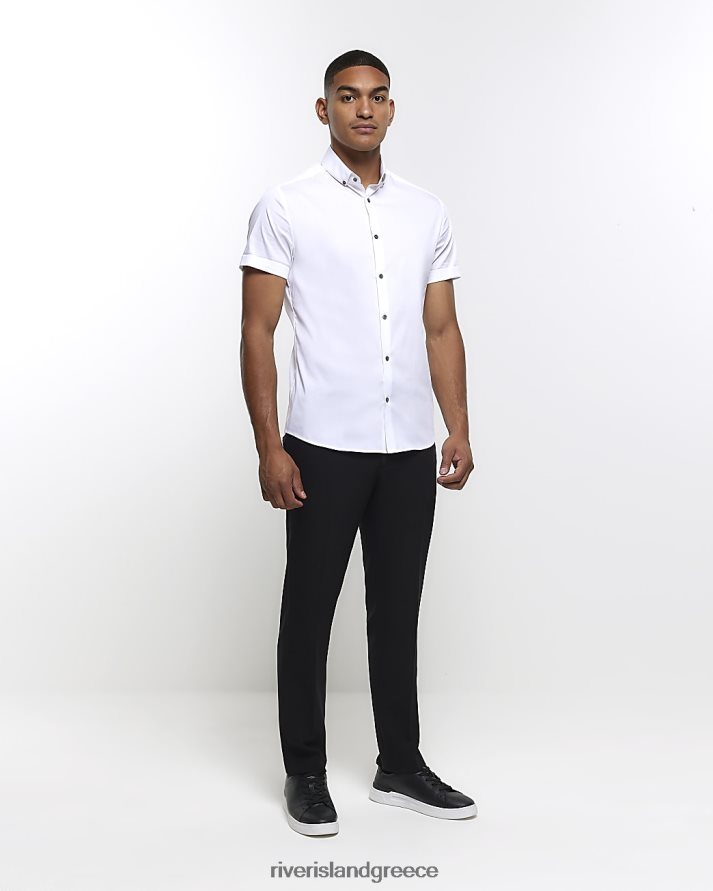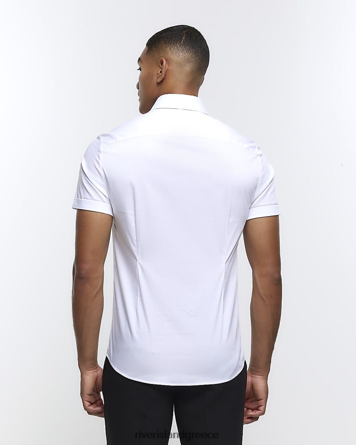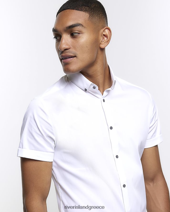 River Island ενδύματα άσπρο άνδρες πουκάμισο με κοντό μανίκι B6N8X2482