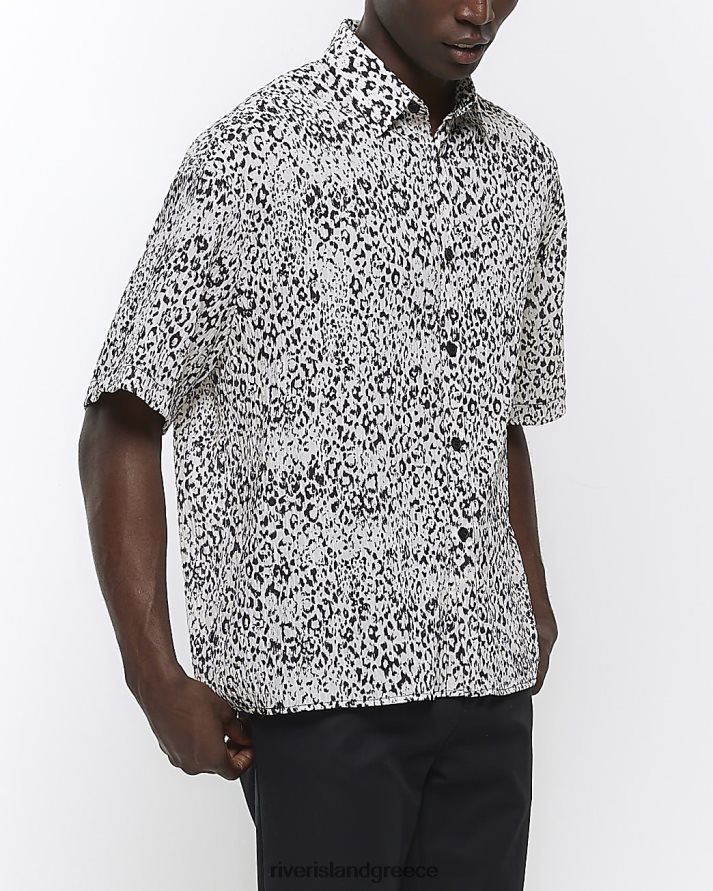 River Island ενδύματα άσπρο άνδρες πουκάμισο με λεοπάρ τύπωμα σε κουτί B6N8X5580