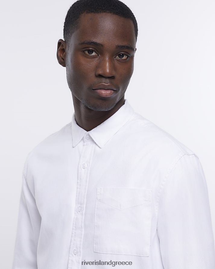 River Island ενδύματα άσπρο άνδρες πουκάμισο lyocell με κανονική εφαρμογή B6N8X3109