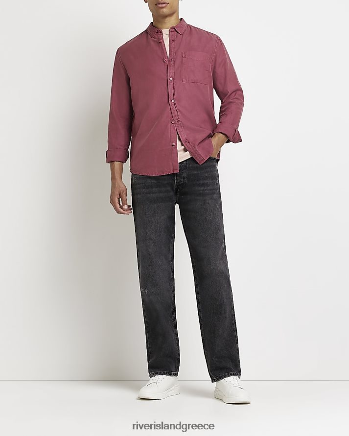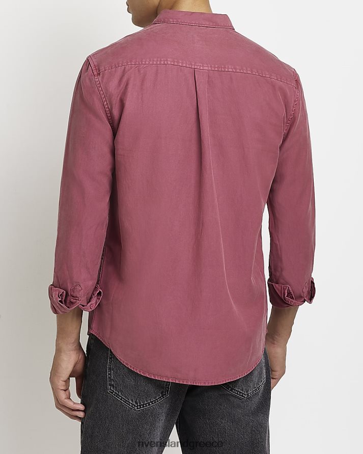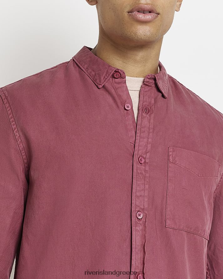 River Island ενδύματα βαθύ ροζ άνδρες πουκάμισο lyocell σε κανονική εφαρμογή B6N8X3111
