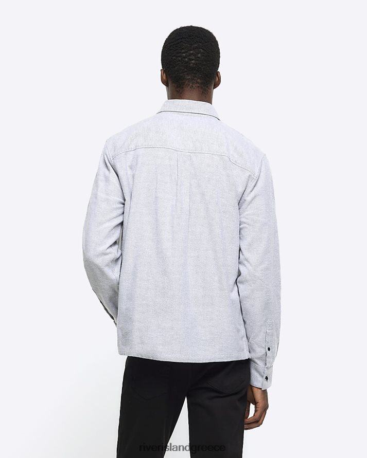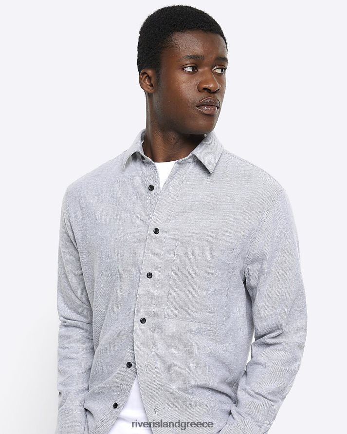 River Island ενδύματα γκρί άνδρες μακρυμάνικο πουκάμισο με κανονική εφαρμογή B6N8X2891