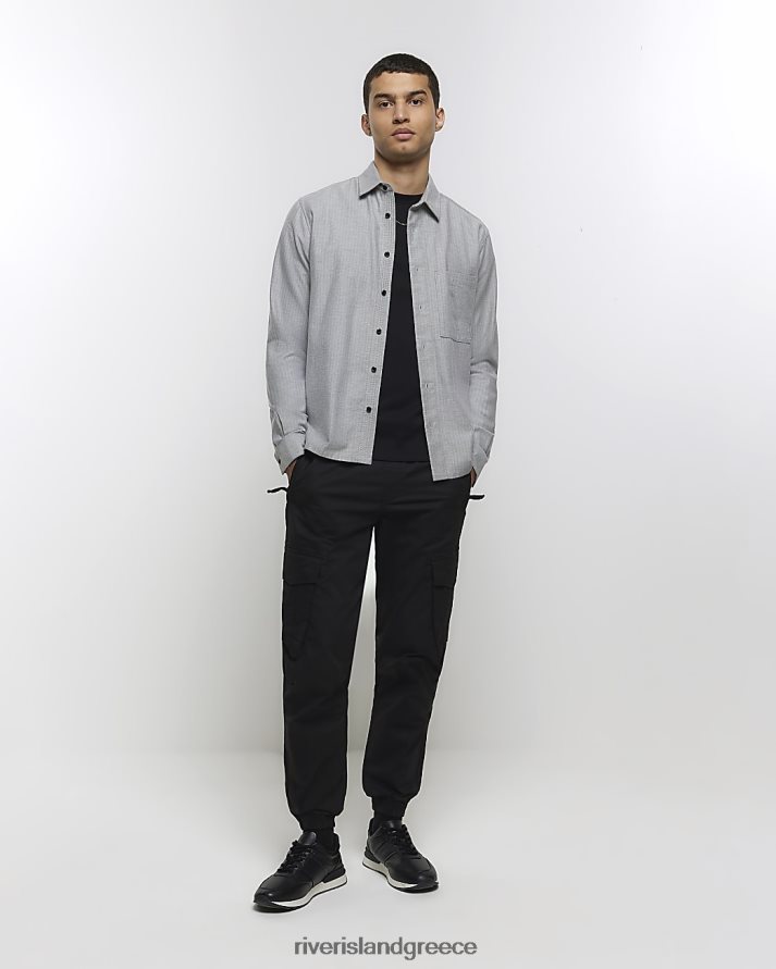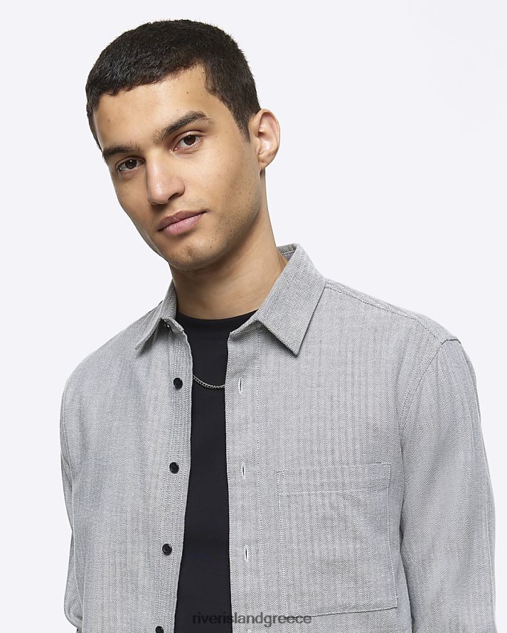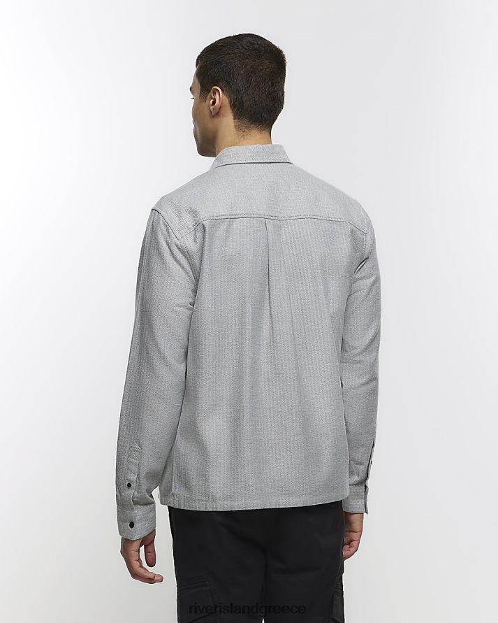 River Island ενδύματα γκρί άνδρες πουκάμισο ψαροκόκαλο σε κανονική εφαρμογή B6N8X5616