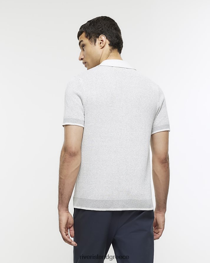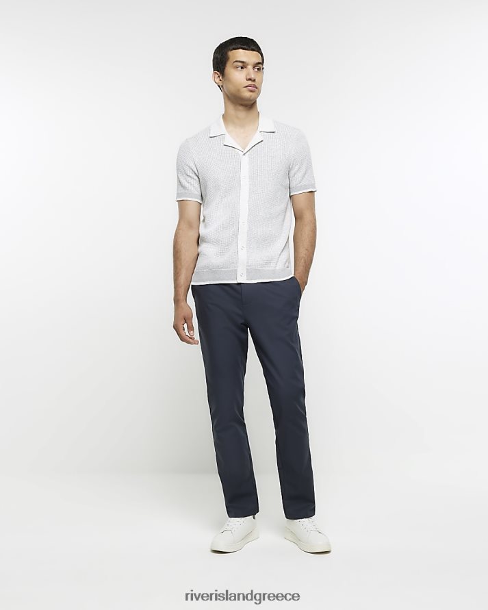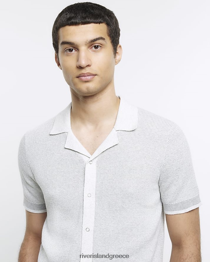 River Island ενδύματα γκρί άνδρες slim fit πλεκτό πουκάμισο revere B6N8X5660