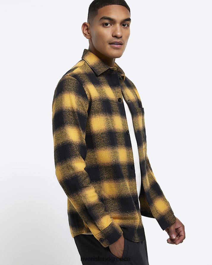 River Island ενδύματα κίτρινος άνδρες μακρυμάνικο πουκάμισο με κανονική εφαρμογή B6N8X2356