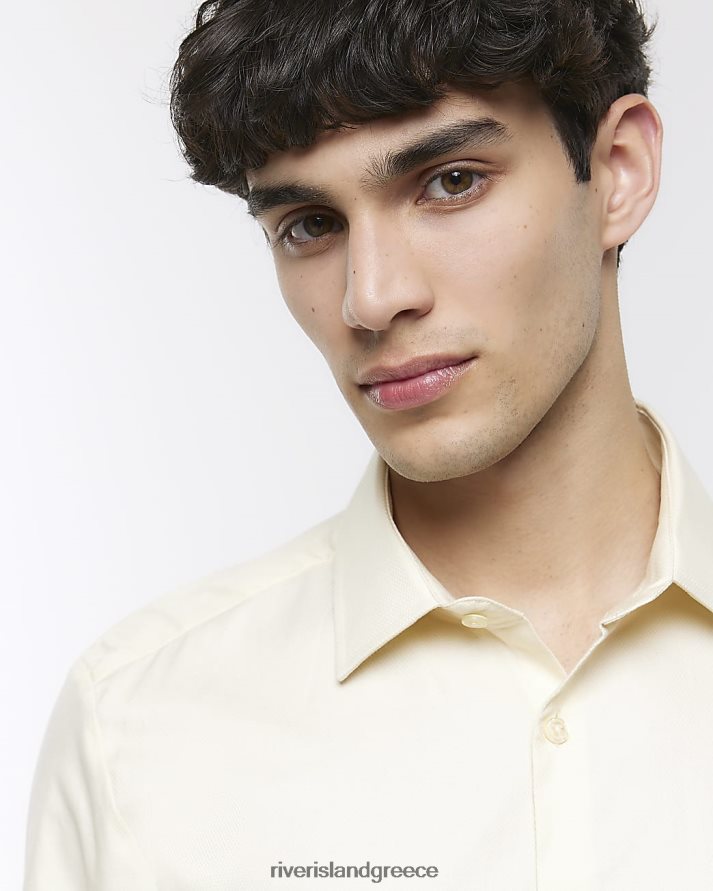 River Island ενδύματα κίτρινος άνδρες μακρυμάνικο πουκάμισο σε λεπτή εφαρμογή B6N8X3057