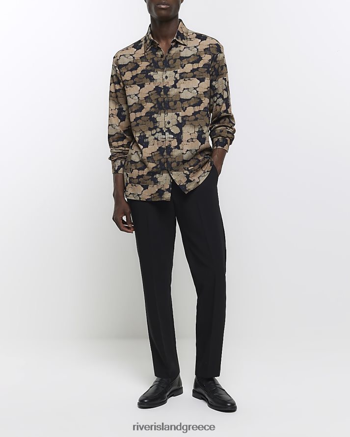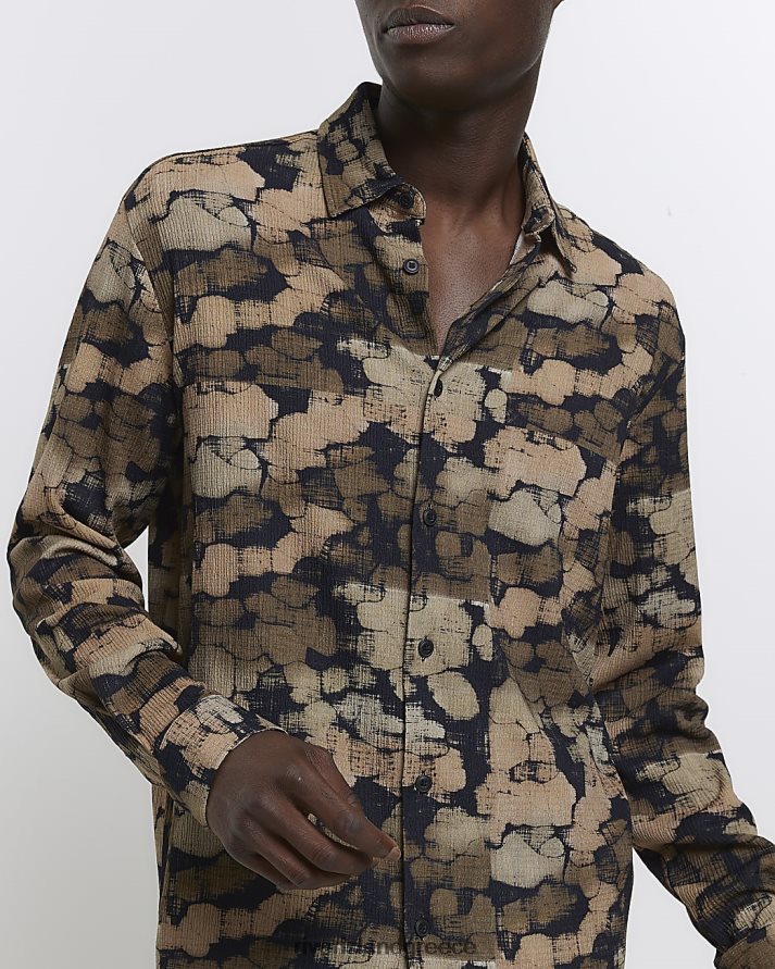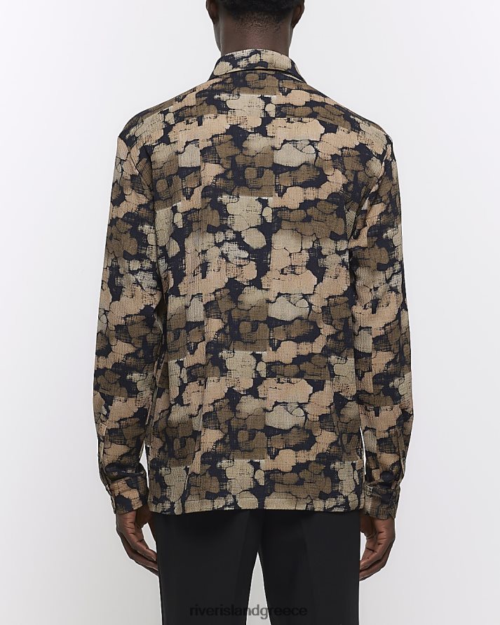 River Island ενδύματα καφέ άνδρες κανονική εφαρμογή ανάγλυφη βοτσαλωτό πουκάμισο B6N8X5567