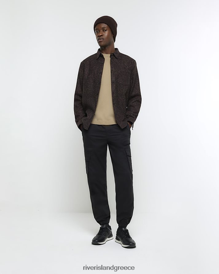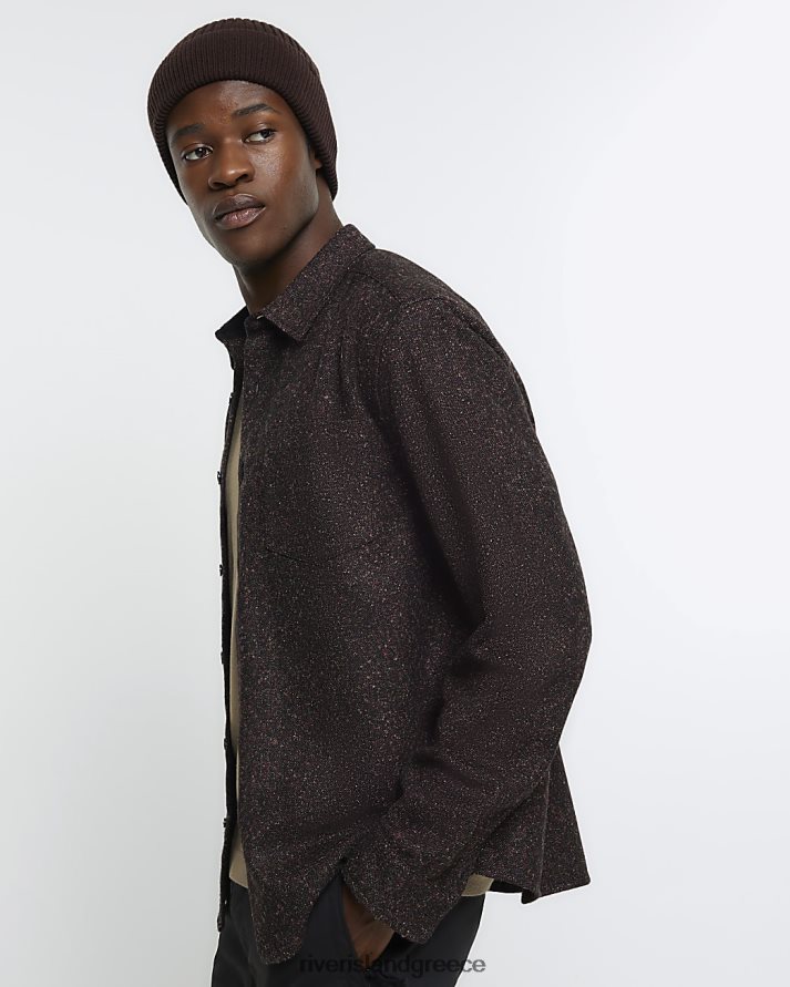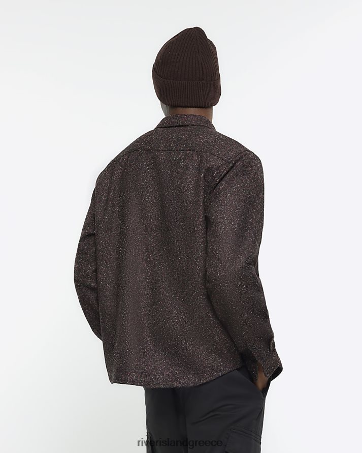River Island ενδύματα καφέ άνδρες κανονική εφαρμογή ανάγλυφη πουκάμισο B6N8X5486