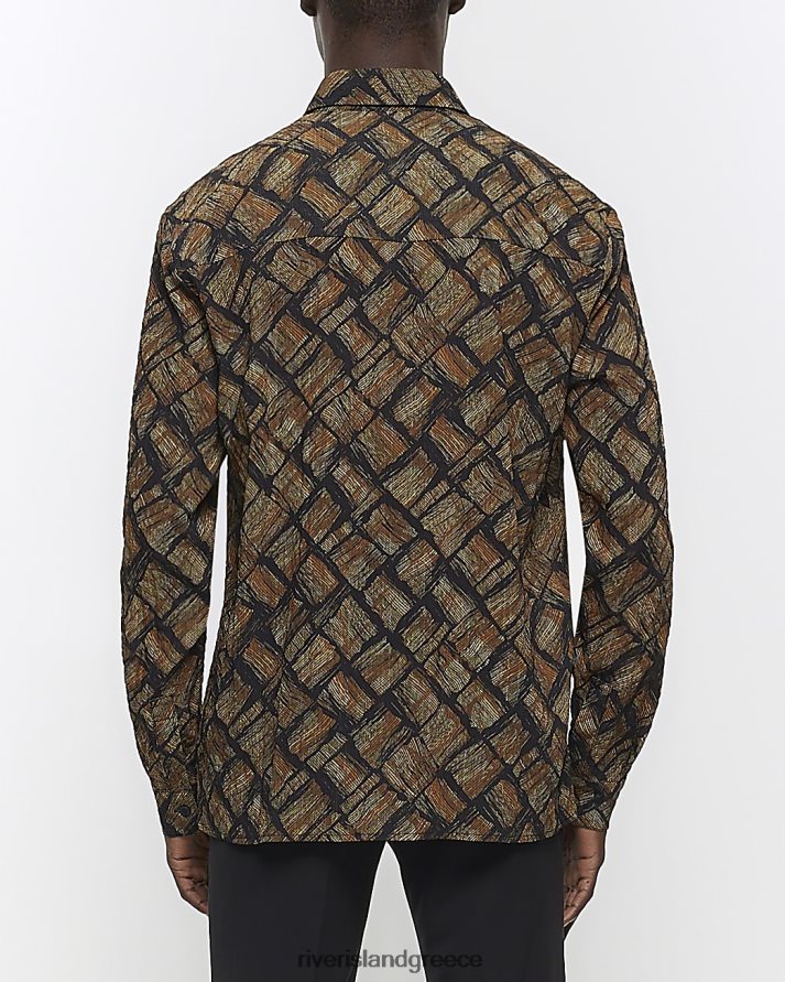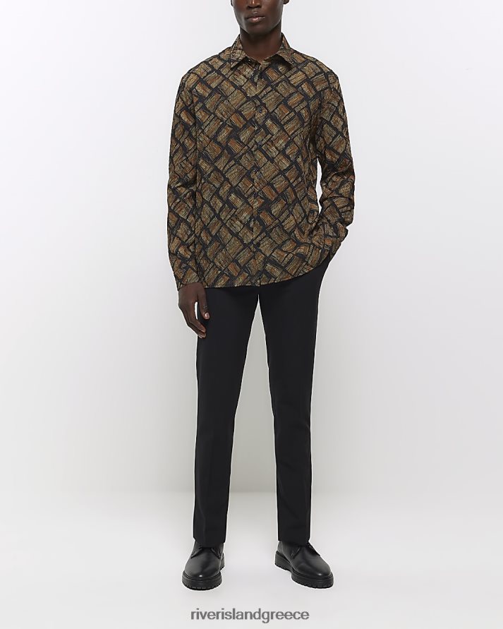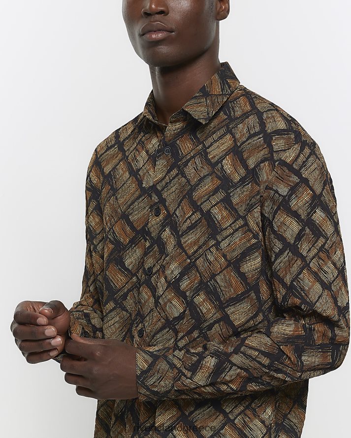 River Island ενδύματα καφέ άνδρες κανονική εφαρμογή πουκάμισο με υφή από τούβλα B6N8X5589