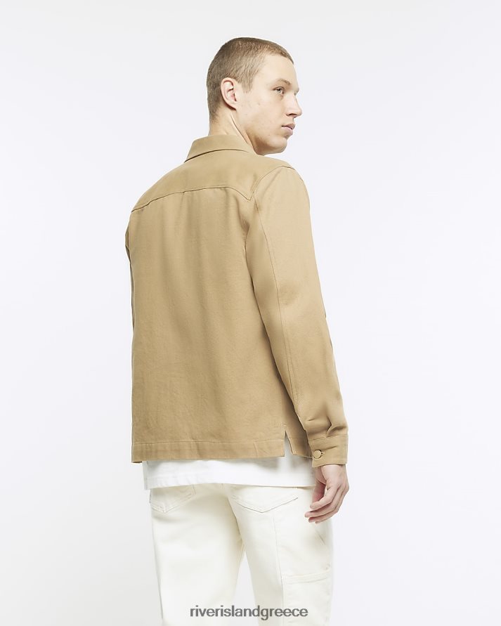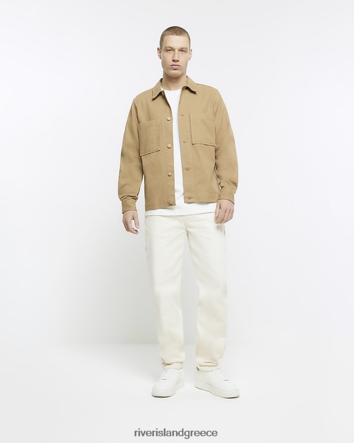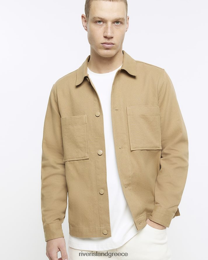 River Island ενδύματα καφέ άνδρες Πουκάμισο με κανονική εφαρμογή με τσέπη στο στήθος B6N8X2483