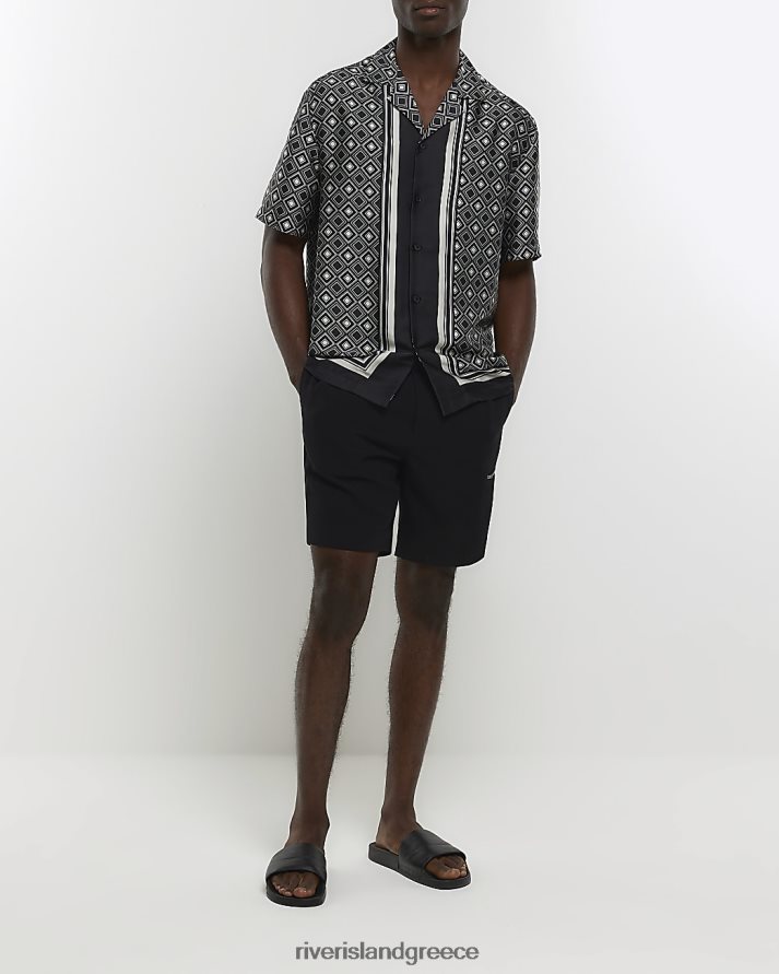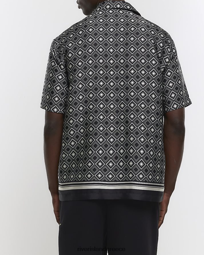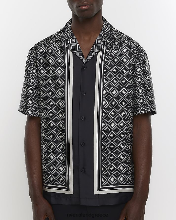 River Island ενδύματα μαύρος άνδρες κανονική εφαρμογή geo print revere shir B6N8X2815