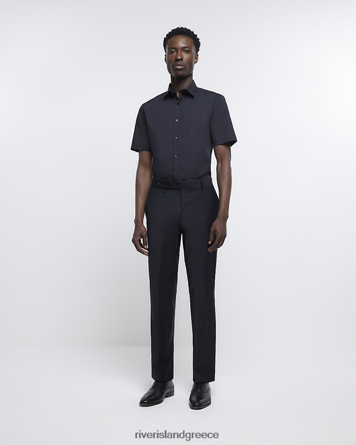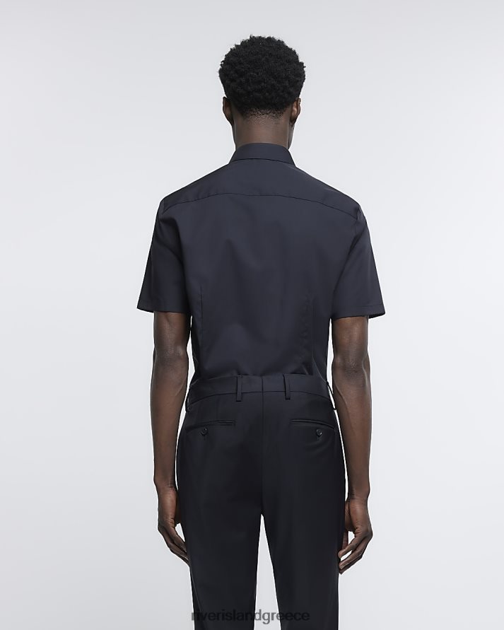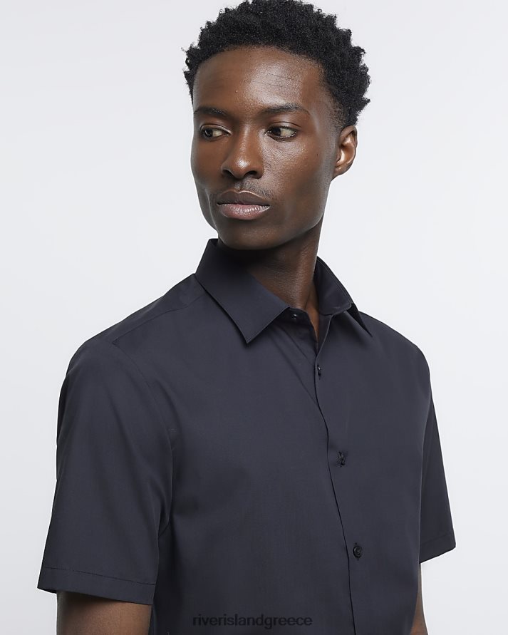 River Island ενδύματα μαύρος άνδρες κοντομάνικο πουκάμισο σε στενή εφαρμογή B6N8X2588