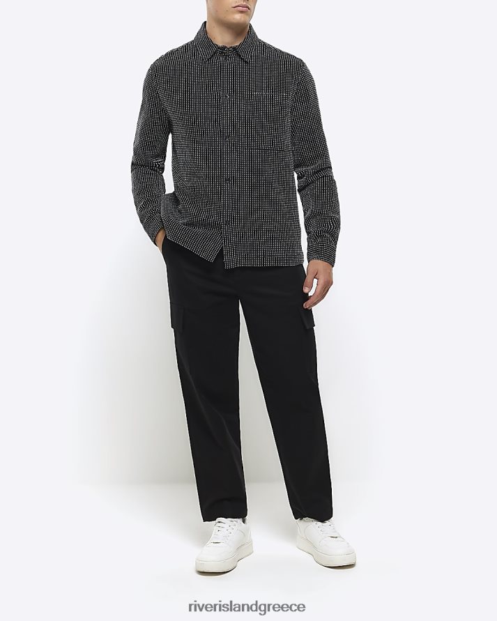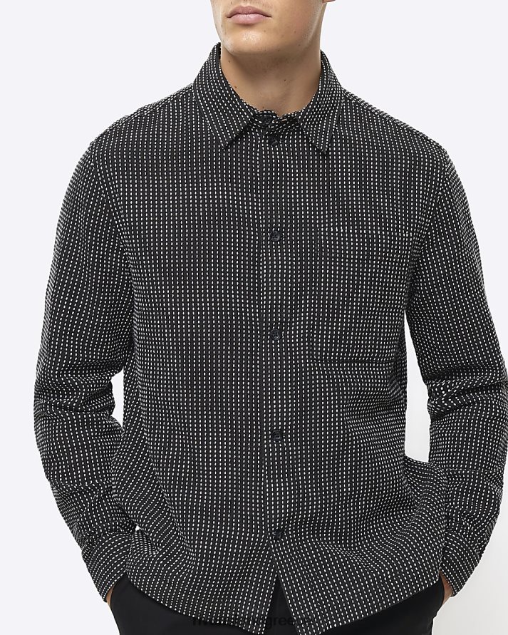 River Island ενδύματα μαύρος άνδρες μακρυμάνικο πουκάμισο με κανονική εφαρμογή B6N8X5530